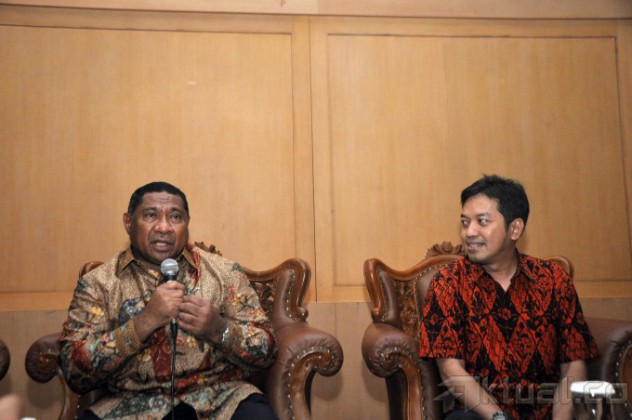 Pimpinan PAN MPR RI Ali Taher Parasong (kiri) dan Ketua LD-FEUI Sonny Harry B Harmadi (kanan) saat menjadi narasumber dalam acara dialog seputar wilayah perbatasan Indonesia di Perpustakaan MPR RI, Komplek Parlemen, Senayan, Jakarta, Senin (8/6/2015). Ali Taher meminta pemerintahan Jokowi serius memerhatikan masyarakat yang hidup di perbatasan. Saat ini nasionalisme mereka tergradasi oleh negara tetangga karena masalah kesehatan dan pendidikan yang tertinggal. AKTUAL/JUNAIDI MAHBUB