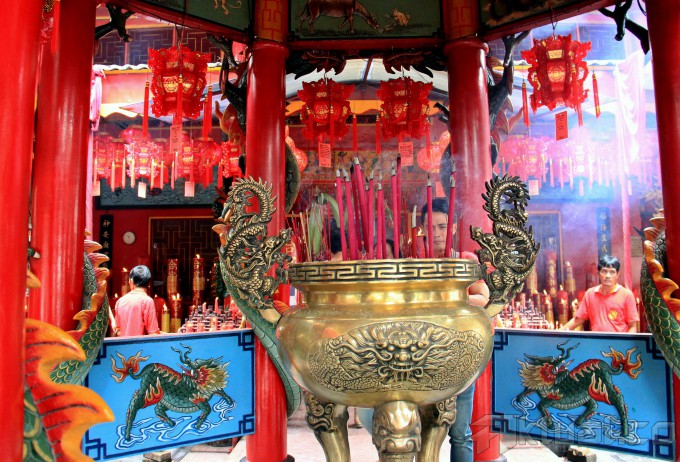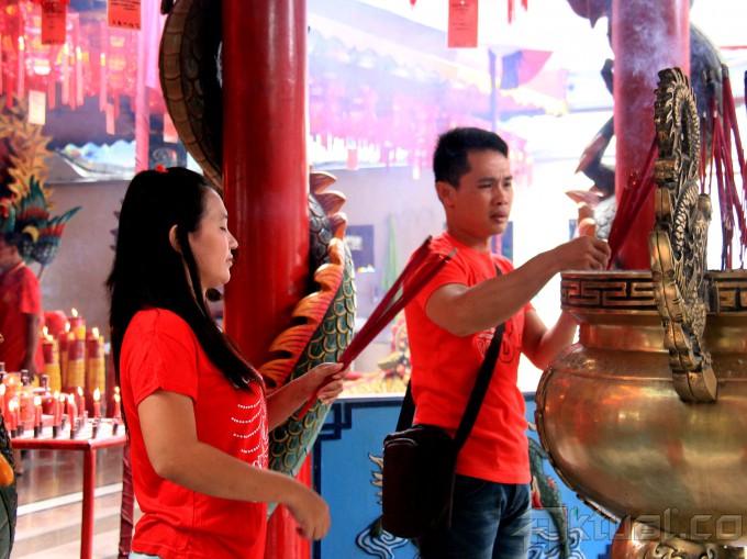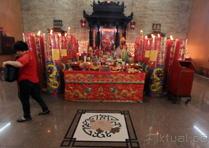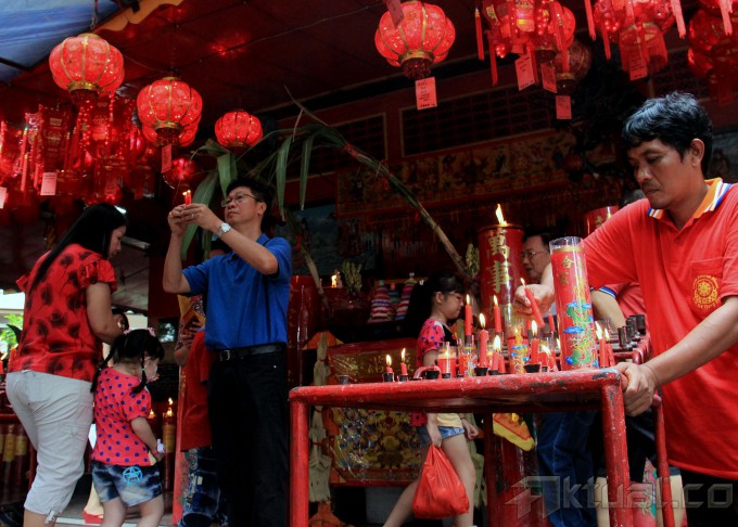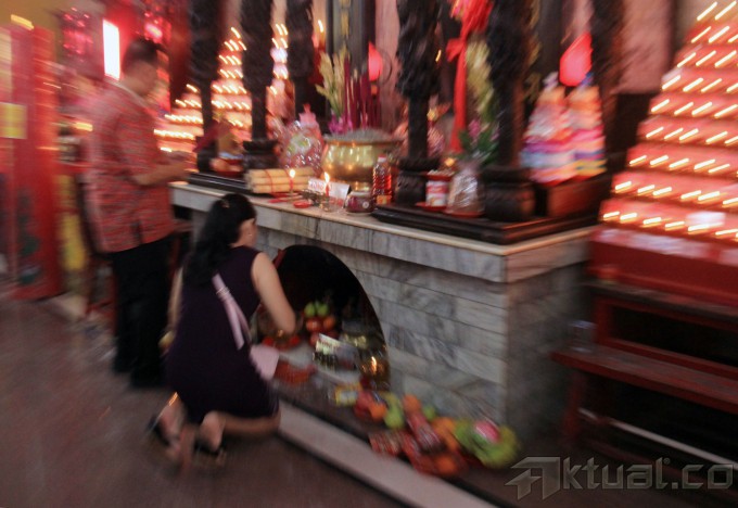 Warga Tionghoa saat melakukan sembahyang Tahun Baru Imlek 2566 di Vihara Amurva Bhumi Hok Tek Djeng Sin, di Jalan Satrio, Jakarta Selatan, Kamis (19/2/2015). Warga Tionghoa melakukan sembahyang untuk menghapus yang lama dan jahat juga berdoa untuk menyongsong kedatangan tahun baru Imlek. AKTUAL/MUNZIR