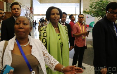 Menlu Afrika Selatan Maite Emily Nkoana (kedua kanan) bersiap mengikuti sidang pleno kedua dalam Pertemuan Tingkat Menteri Asia Afrika di Jakarta Convention Center, Senin (20/4). Menlu Afsel Maite Emily menandatangani nota kesepahaman dengan Indonesia dalam sejumlah bidang. AKTUAL/TINO OKTAVIANO