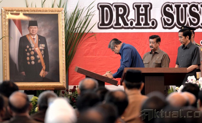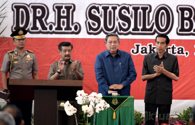 Presiden SBY mengendarai mobil golf untuk meninjau fasilitas yang tersedia di Kawasan Adhyaksa Loka dan RSU Adhyaksa, seusai peresmian, Jumat (12/9/2014) pagi. Joko Widodo di dalam mobil tersebut. AKTUAL/cahyo/presidenri.go.id