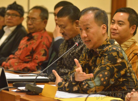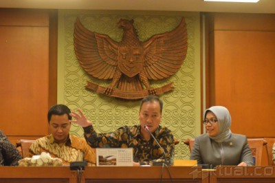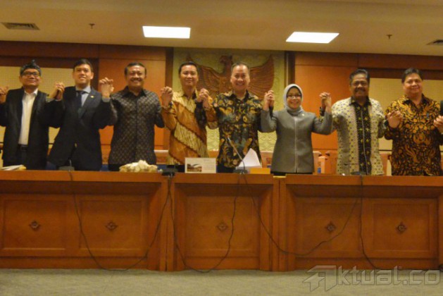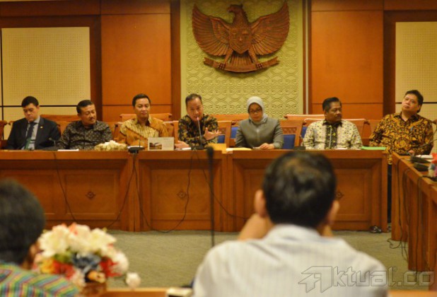 Ketua Fraksi Partai Golkar versi Munas Ancol, Agus Gumiwang (tengah) didampingi Sekretaris Fraksi Fayakhun Andriadi (kiri) dan Bendahara Fraksi Eni Maulani Saragih (kanan) memberikan keterangan pers di Ruang serba guna Kompleks Parlemen Senayan, Jakarta Selatan, Senin (23/3/2015). Partai Golkar kubu Agung Laksono langsung mengganti susunan komposisi pimpinan Fraksi Golkar di DPR setelah Menkum HAM Yasonna H. Laoly menerbitkan surat keputusan yang mengakui kepengurusannya. Kubu Agung mengganti pejabat ketua fraksi dari sebelumnya Ade Komaruddin menjadi Agus Gumiwang Kartasasmita. AKTUAL/JUNAIDI MAHBUB