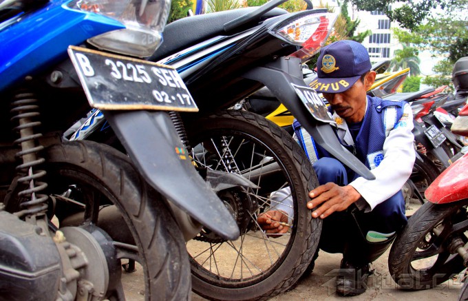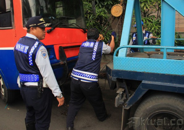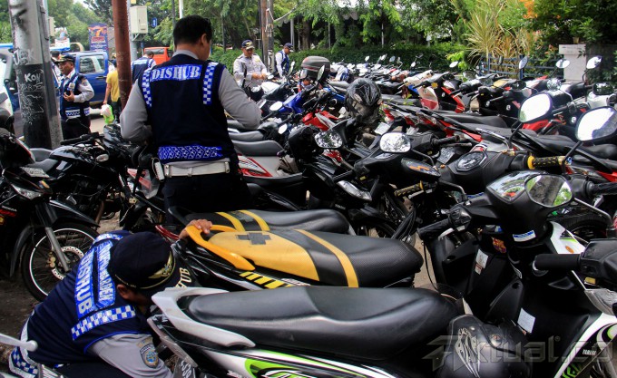 Petugas Dinas Perhubungan (DISHUB) DKI Jakarta melakukan razia kendaraan parkir liar dikawasan Sarinah, Jakarta Pusat, Senin (22/12/2014). Gencarnya razia parkir liar di bahu jalan yang dilakukan Dishub tidak lantas membuat masyarakat langsung jera. Buktinya, hingga kini parkir liar masih saja marak di wilayah itu. AKTUAL/MUNZIR