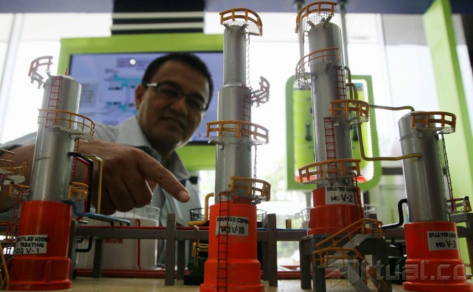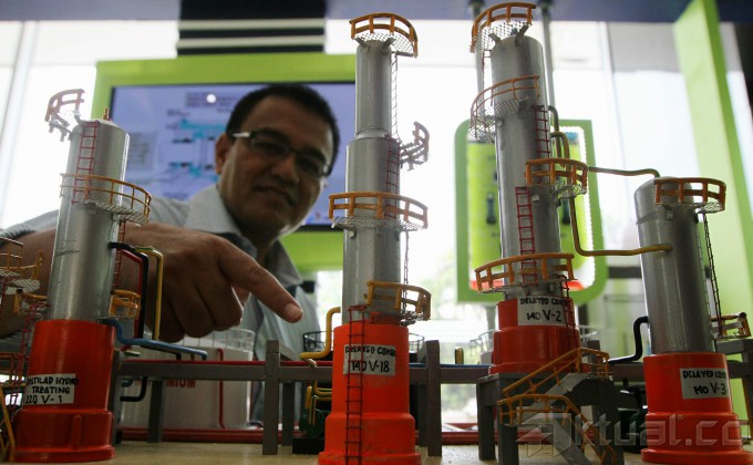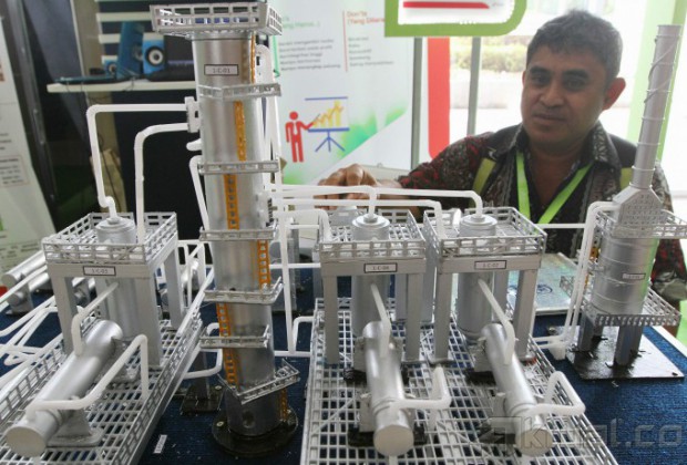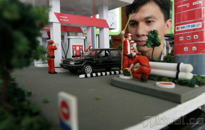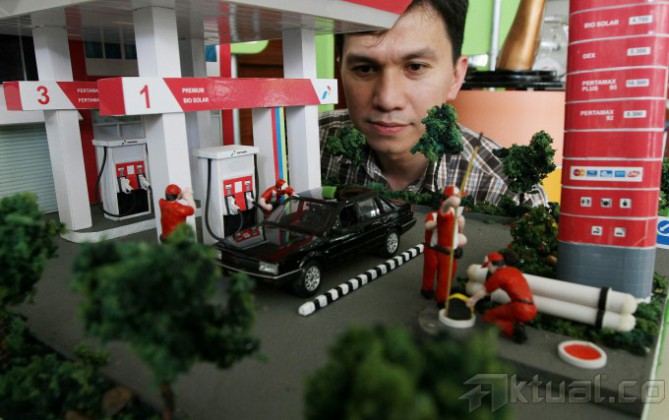 Pengunjung melihat maket SPBU saat pameran di kantor Pertamina, Jakarta, Selasa (4/11/2014). PT Pertamina (Persero) menargetkan produksi minyak dan gas pada 2015 mengalami kenaikan sekitar 9 % dibandingkan prognosa 2014. AKTUAL/TINO OKTAVIANO
