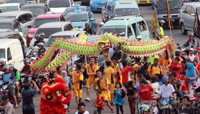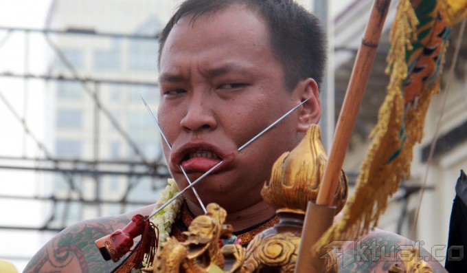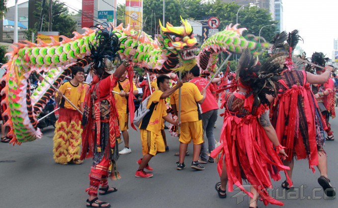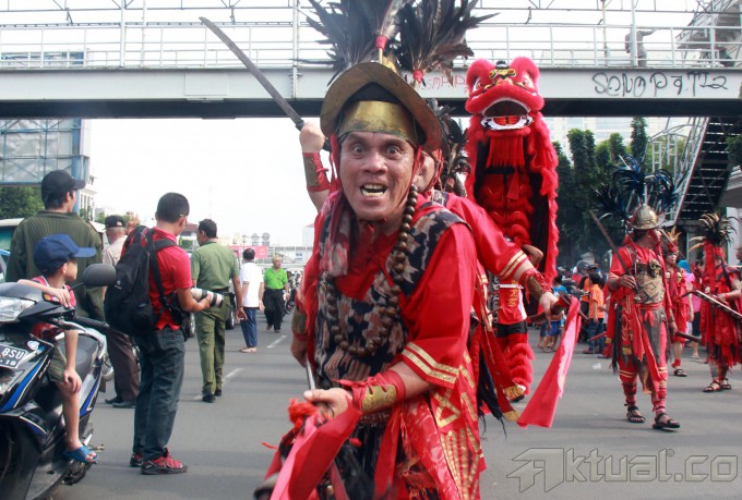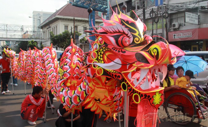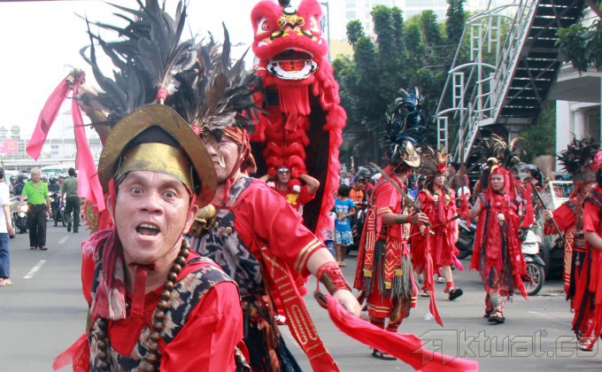 Seorang warga etnis Tionghoa, melaksanakan ritual Cap Go Meh dengan berkeliling kota, di Jakarta, Jumat (14/2/2014). Cap Go Meh melambangkan hari ke-15 dan hari terakhir dari masa perayaan Imlek bagi warga keturunan Tionghoa yang tinggal di luar Cina. Aktual/Tino Oktaviano