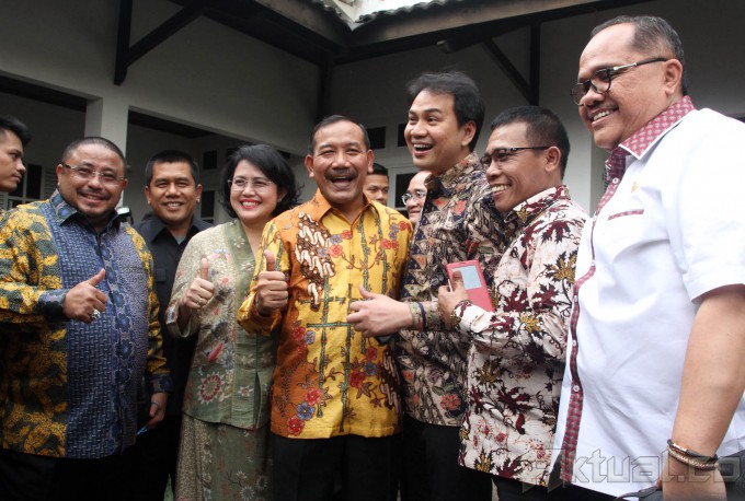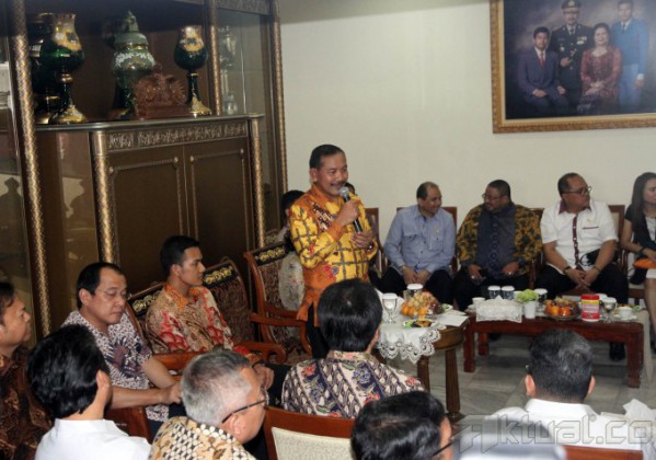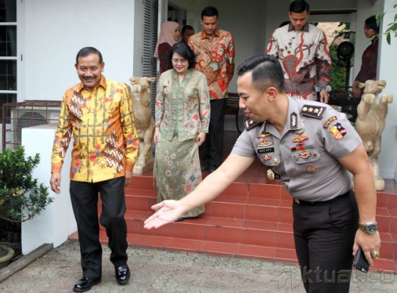 Calon Kepala Polri Komjen (Pol) Badrodin Haiti saat menerima sejumlah anggota Komisi III DPR RI di kediamannya di Jakarta, Rabu (15/4/2015). Kunjungan ke kediaman Badrodin menjadi rangkaian uji kelayakan dan kepatutan calon Kapolri. AKTUAL/JUNAIDI MAHBUB