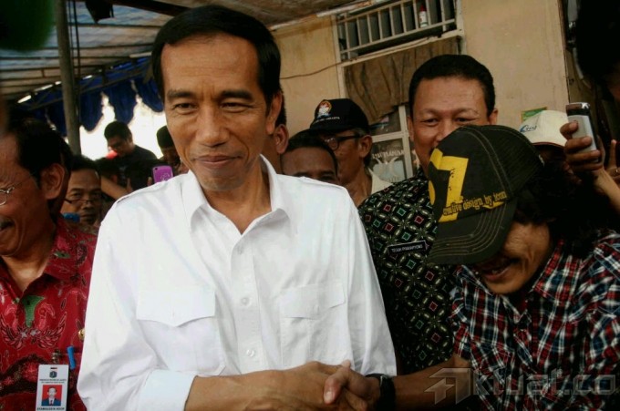 Gubernur DKI Jakarta Joko Widodo membagikan buku kepada warga Petogogan saat meresmikan pembangunan kampung deret di Kawasan Petogogan, Jakarta, Kamis (31/10/2013). Setelah keberhasilan pembangunan kampung deret di Kelurahan Tanah Tinggi dan Kecamatan Johar Baru, Hari ini pemerintah provinsi DKI Jakarta meresmikan pembangunan kampung deret di permukiman petogogan, Kebayoran Baru. Aktual/Oke Dwi Atmaja