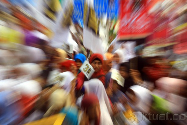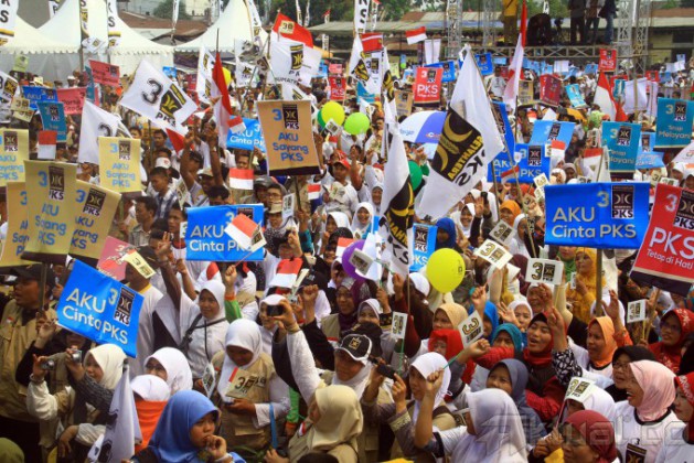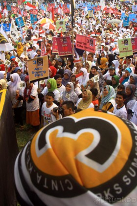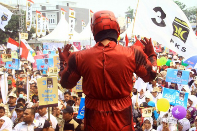 Ribuan kader dan simpatisan Partai Keadilan Sejahtera (PKS) memadati Lapangan Gajah Mada saat mengikuti kampanye di Medan, Sumatera Utara, Rabu (26/3/2014). Kampanye terbuka Partai Keadilan Sejahtera PKS mensiasati massa pendukung yang membawa anak-anak dengan menyediakan tempat penitipan anak yang terletak di bagian sisi lapangan. Aktual/Andi Rambe