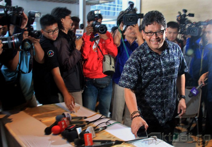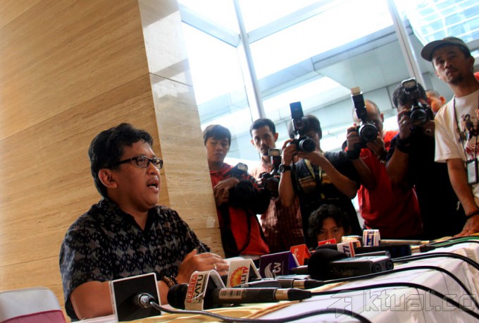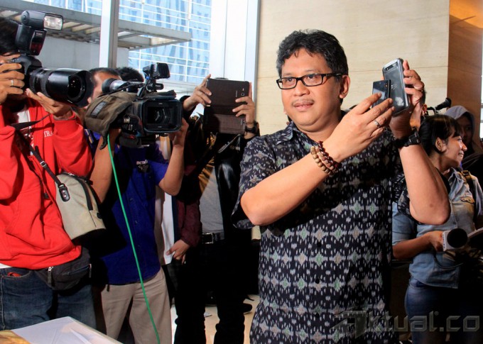 Plt Sekjen PDIP Hasto Kristiyanto, mengajak wartawan ke apartemen Capital Residence, Sudirman, Jakarta Pusat, Kamis (22/01/2015). Ajakan ini untuk menggelar rekonstruksi pertemuan PDIP dengan Ketua KPK Abraham Samad. Namun batal karena alasan privasi dari pihak pemilik gedung. AKTUAL/MUNZIR