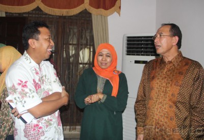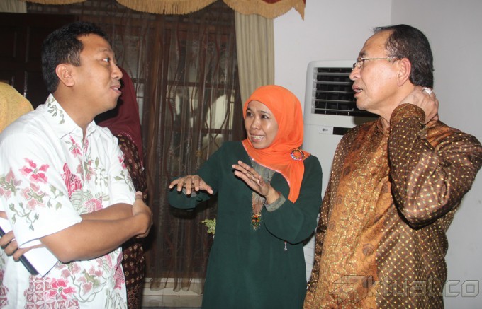 Ketua Umum Partai Persatuan Pembangunan (PPP) Suryadharma Ali bersama Sekretaris Jenderal PPP Romahurmuziy, berbincang dengan Ketua Umum Muslimat NU, Khofifah Indar Parawansa, saat berkunjung ke kantor Muslimat NU kediaman di Jalan Pengadegan Timur Raya, Pancoran, Jakarta Selatan, Selasa (18/3/2014). Khofifah yang punya 15 juta pendukung militan dari kaum perempuan NU, adalah salah satu calon presiden yang bakal diusung oleh PPP pada pemilu presiden 2014 mendatang. Aktual/Istimewa