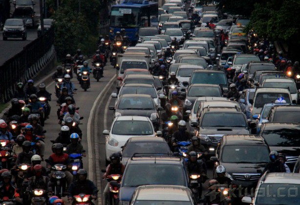 Kemacetan kendaraan di jalan Karet Tengsin, Jakarta Pusat, Rabu (3/6/2015). Kerugian yang ditmbulkan akibat kemacetan jalan raya DKI Jakarta mencapai Rp 65 triliun dan membuat terganggu psikologis warga Jakarta. AKTUAL/MUNZIR