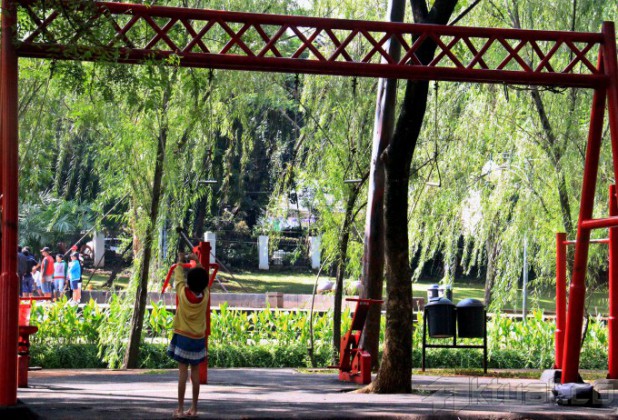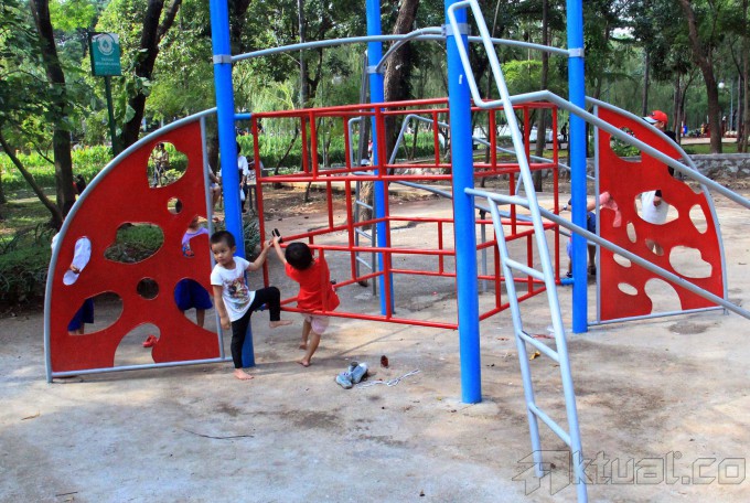 Beberapa anak bermain di taman kota kawasan Tebet, Jakarta Selatan, Jumat (16/1/2015). Badan Pemberdayaan Perempuan, Perlindungan Anak dan Keluarga Berencana (BP3AKB) Provinsi DKI Jakarta akan membangun Ruang Publik Terpadu Ramah Anak dan Masyarakat (RPTRAM). Ruang publik itu dibangun untuk mendukung sarana konseling kepada masyarakat khususnya ibu dan anak. AKTUAL/MUNZIR