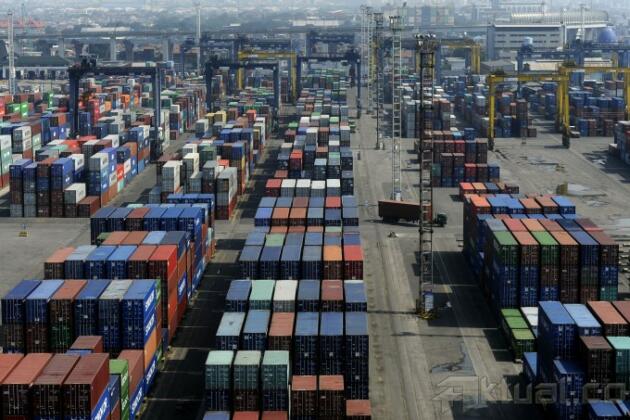 Aktivitas bongkar muat peti kemas di terminal peti kemas Jakarta International Cointainer Terminal (JICT), Tanjung Priok, Jakarta, Senin (23/3). Pelindo II mencatat waktu tunggu pelayanan kapal dan barang (dwelling Time) di JITC yang semula tujuh hari menjadi rata-rata 4,9 hari atau sudah mendekati target pemerintah sebesar empat hari. ANTARA FOTO/Wahyu Putro