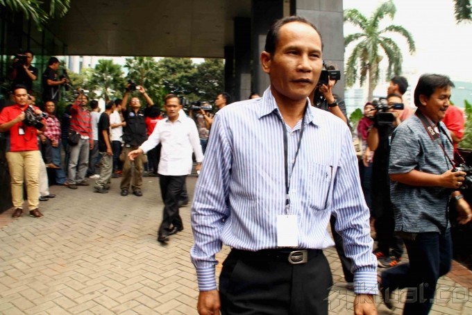 Wakil Bupati Gunung Mas, Arton S Dohong, meninggalkan gedung KPK usai pemeriksaan sebagai saksi atas kasus dugaan suap terhadap ketua MK nonaktif Akil Mochtar terkait pengurusan Pilkada Kabupaten Gunung Mas di gedung KPK, Jakarta, Kamis (24/10/2013). Arton S Dohong dimintai keterangan sebagai saksi tersangka Hambit Bintih yang juga merupakan Bupati Gunung Mas. Aktual/Oke Dwi Atmaja