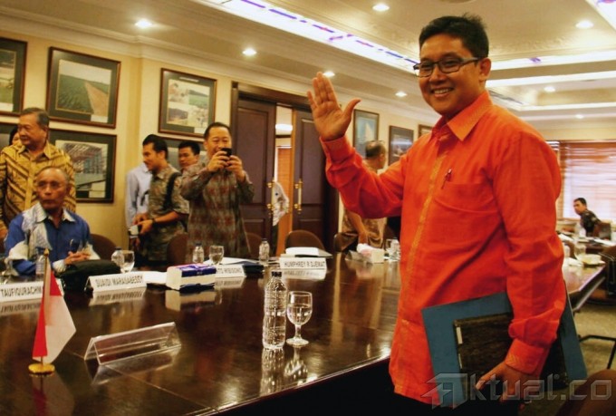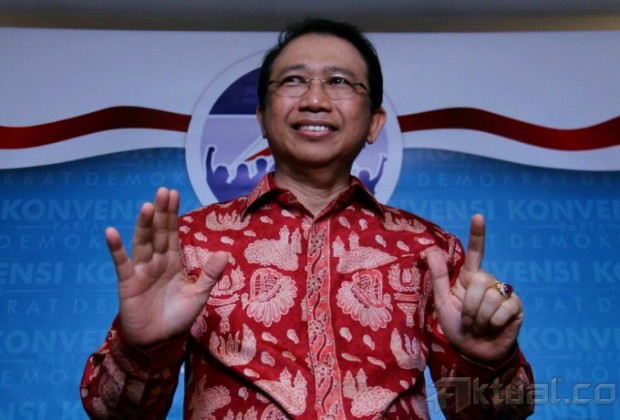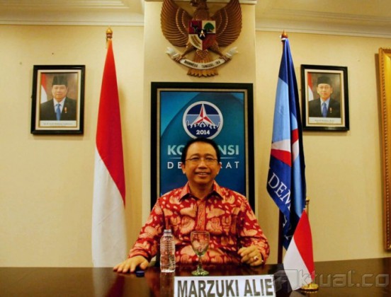 Ketua DPR Marzuki Alie saat menghadiri Konvensi Partai Demokrat di Wisma Kodel Jalan Rasuna Sahid, Jakarta, Rabu (28/8). Marzuki mengaku dirinya spesial di bandingkan Lima kandidat yang telah hadir pada hari ini. Aktual/Oke Dwi Atmaja