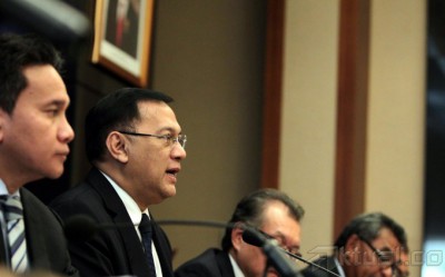 Gubernur Bank Indonesia (BI) Agus Martowardojo (tengah) didampingi Deputi Gubernur Senior Mirza Adityaswara (kiri), dan Deputi Gunernur Halim Alamsyah (kanan) memberikan keterangan terkait hasil rapat Dewan Gubernur Bank Indonesia di Jakarta, Kamis (9/1/2014). Rapat Dewan Gubernur memutuskan bahwa BI Rate tetap di kisaran 7,5 persen. Aktual/Tino Oktaviano
