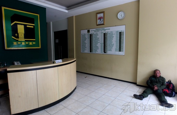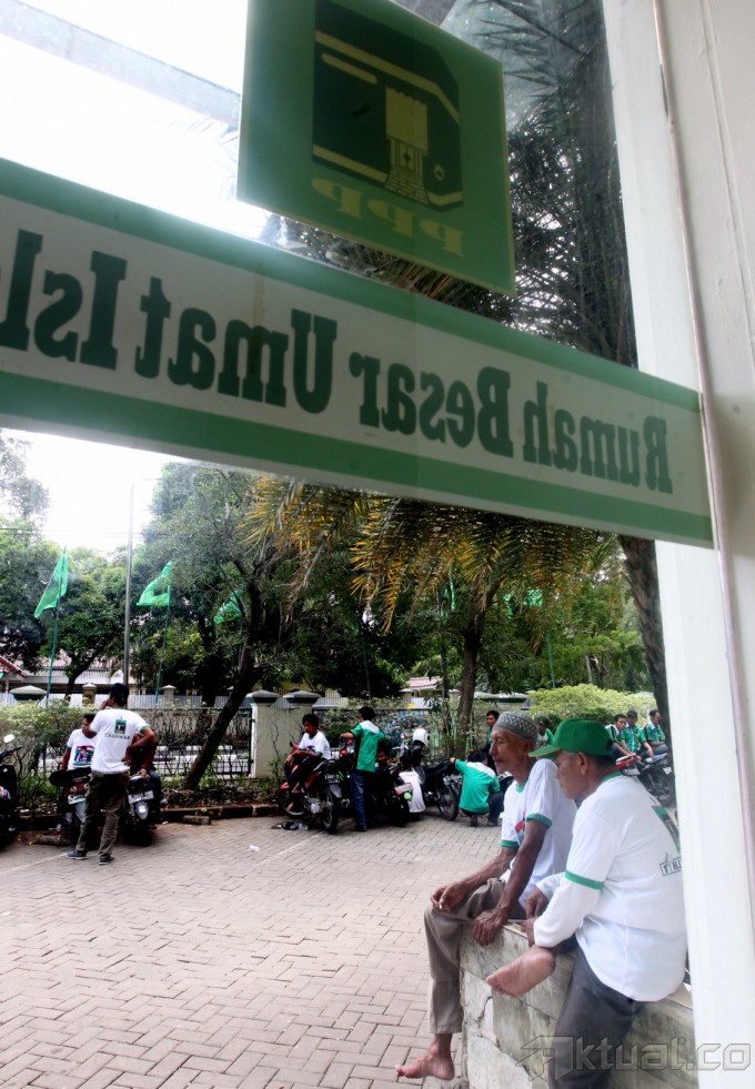 Puluhan simpatisan PPP pro Suryadharma Ali menduduki kantor DPP PPP di Jakarta, Minggu (20/4/2014). Massa yang mengaku anak buah Politisi PPP Lulung AL ini menjaga gedung partai berlambang Ka’bah dari kubu Sekjen PPP Romahurmuziy. Aktual/Tino Oktaviano