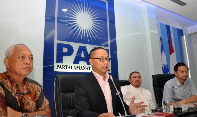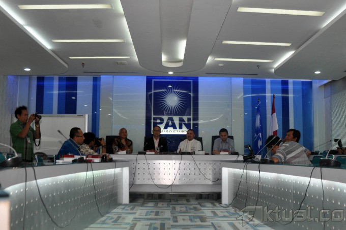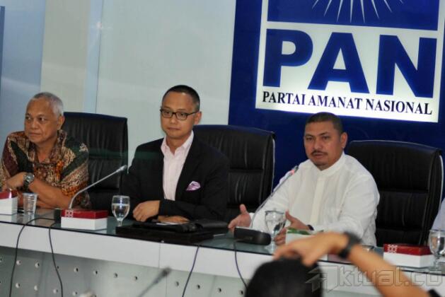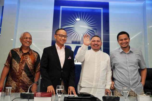 Dari kiri ke kanan, Ketua DPP PAN Agung Mozin, Sekjen PAN Eddy Soeparno, Ketua Fraksi PAN Mulfahri Harahap, Wakil Ketua Umum PAN Hanafi Rais tentang pemindahan kantor DPP PAN di Kompleks Parlemen Senayan, Jakarta, Jumat (17/4/2015). PAN akan memindahkan kantor DPP PAN yang berada di Jalan TB Simatupang nomor 88 karena akan digunakan pemiliknya yaitu putra sulung Hatta Rajasa, Muhammad Reza Ihksan Rajasa untuk tempat usaha. Pembelian kantor baru berasal dari saweran sebesar Rp 1.108.259.018 dari 267 kader dan simpatisan. AKTUAL/JUNAIDI MAHBUB