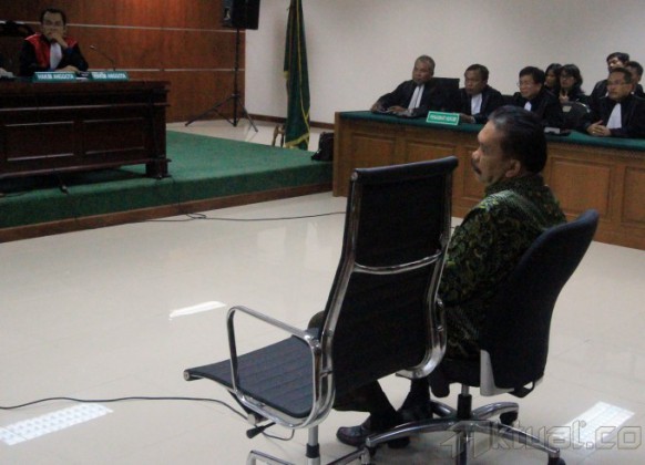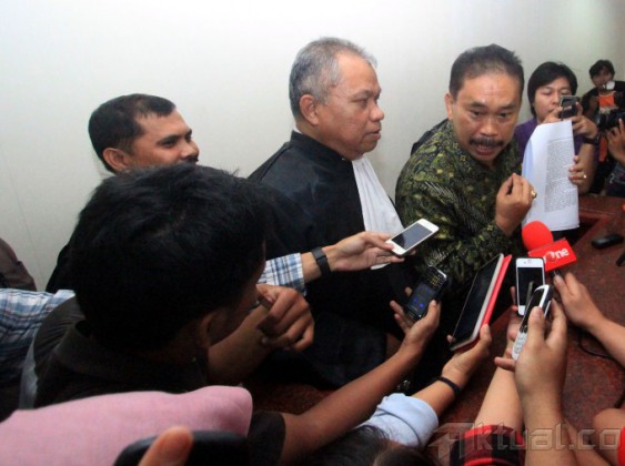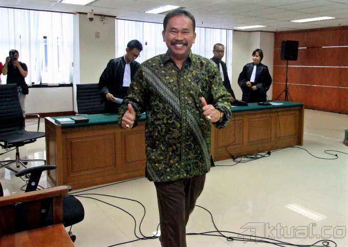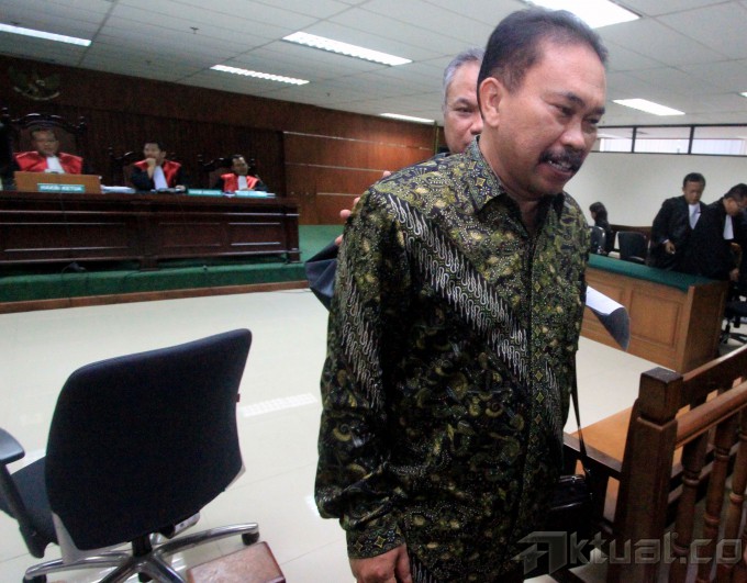 Bupati Tapanuli Tengah non aktif Raja Bonaran Situmeang keluar dari ruang sidang di Pengadilan Tindak Pidana Korupsi, Jalan HR Rasuna Said, Jakarta Selatan, Senin (23/2/2015). Bonaran menjalani kasus dugaan suap penanganan sengketa Perselisihan Hasil Pemilihan Umum (PHPU) Kepala Daerah Tapanuli Tengah di Mahkamah Konstitusi. AKTUAL/MUNZIR