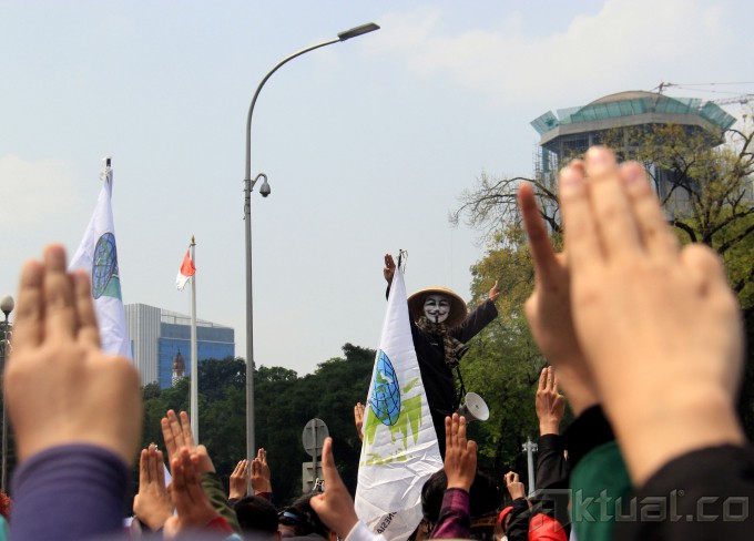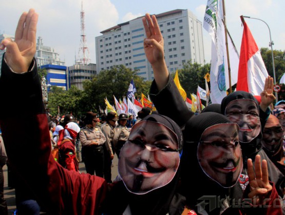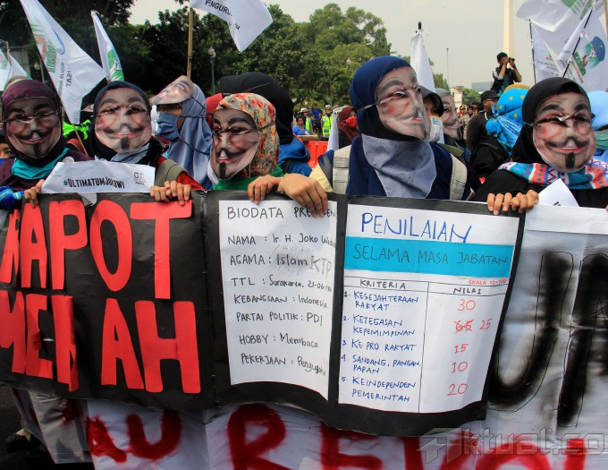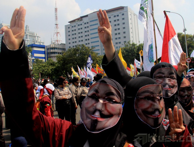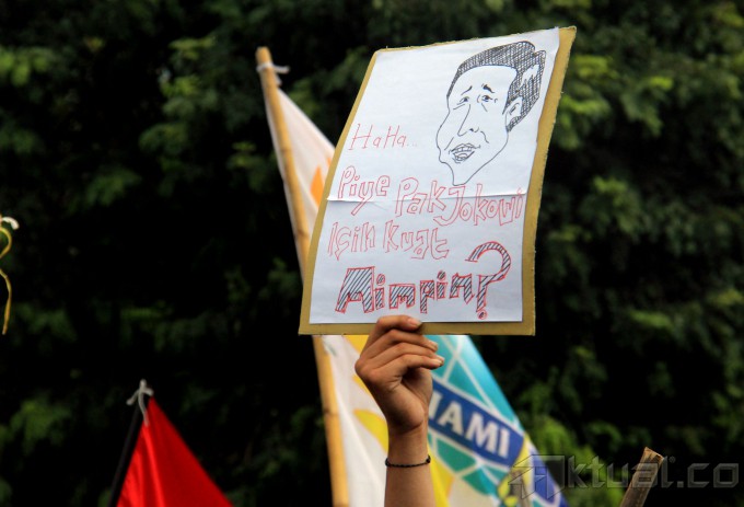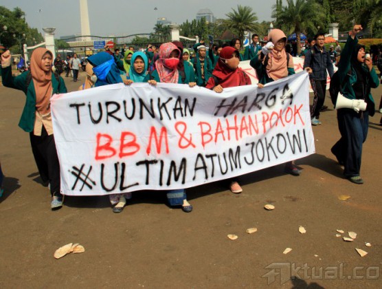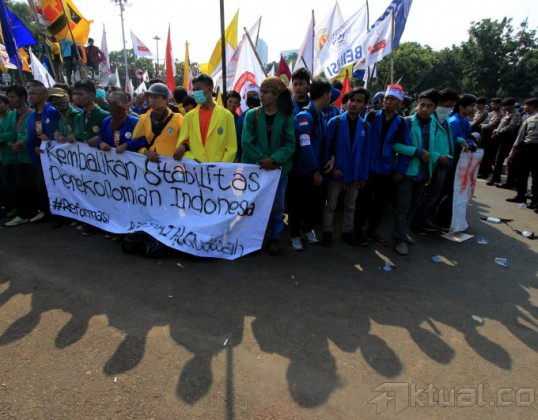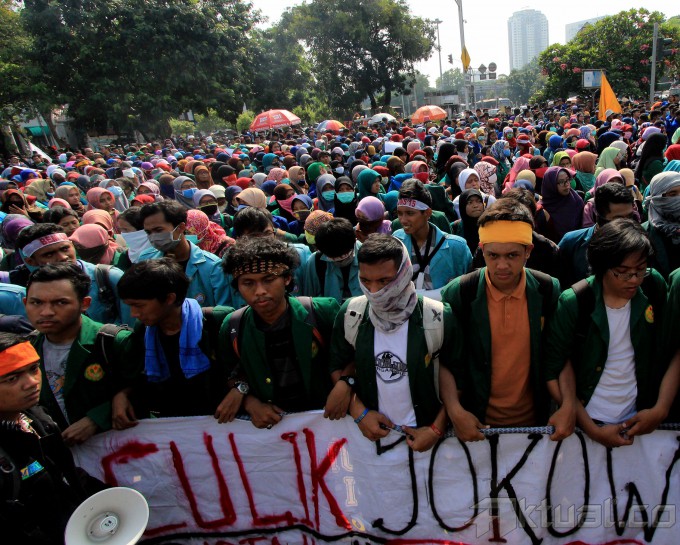 Ribuan mahasiswa kembali melakukan aksi kepung Istana Merdeka, Jakarta, Kamis (21/5/2015). Aksi ribuan mahasiswa yang dari beberapa elemen menuntut agar Jokowi-JK turun dan segera menurunkan harga BBM. AKTUAL/MUNZIR