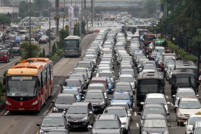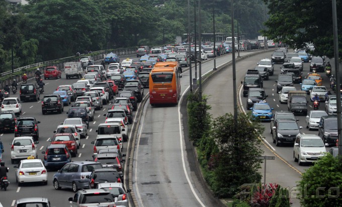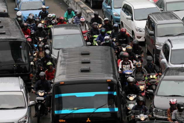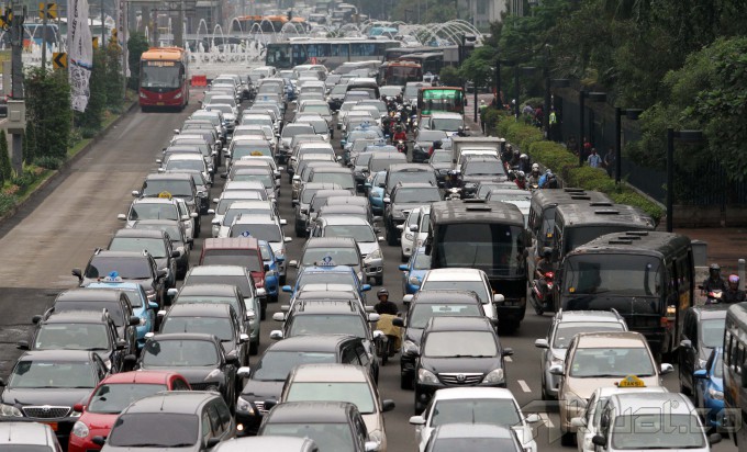Kendaraan melaju padat merayap di kawasan Dukuh Atas, Jakarta, Rabu (26/2/2014). Kemacetan parah yang terjadi di ibukota beberapa bulan terakhir ini disebabkan meningkatnya jumlah perjalanan akibat bertambahnya kendaraan baru di Jakarta. Berdasarkan kajian Pusat Studi Transportasi dan Logistik (Pustral) Universitas Gadjah Mada (UGM) kerugian akibat kemacetan di Jakarta rata-rata sudah mencapai Rp 35 triliun per tahun. Aktual/Tino Oktaviano