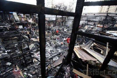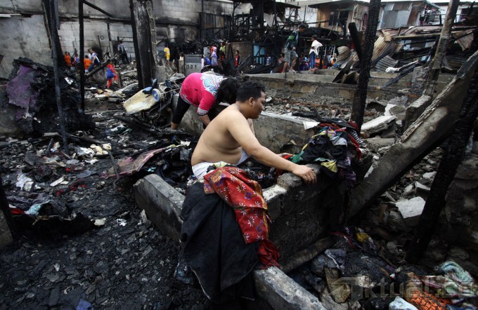 Beberapa warga mengais sisa dari kebakaran yang melanda pemukiman padat penduduk di Kemayoran Gempol, Jakarta Pusat, Kamis (31/7/2014). Kebakaran diduga akibat arus pendek listrik dan menghanguskan 25 rumah yang dihuni 67 kepala keluarga dengan 209 jiwa. Aktual/Tino Oktaviano