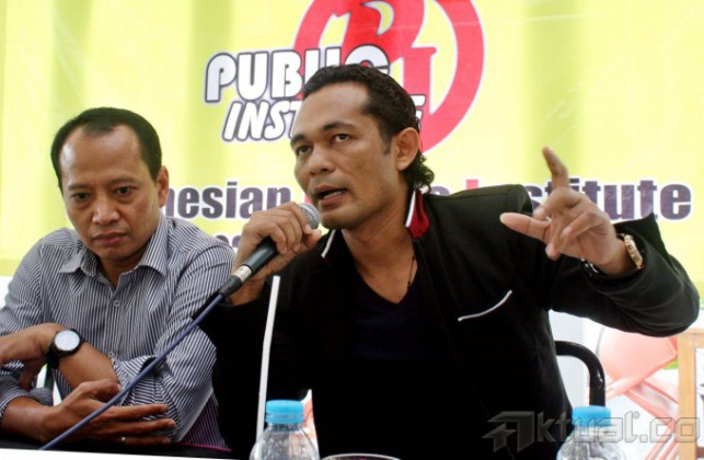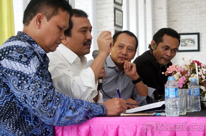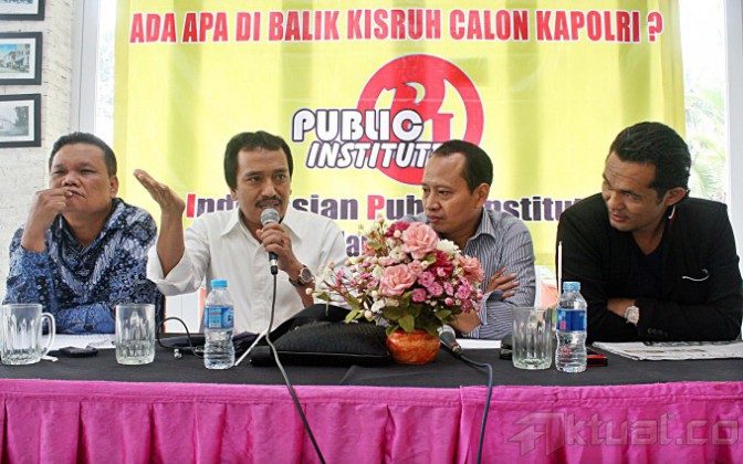 Dari kiri ke kanan, Pakar Komunikasi Politik Emrus Sihombing, Ketua Perhimpunan Pergerakan Indonesia (PPI) Ma’mun Murod, Peneliti Senior The Indonesian Public Institute Karyono Wibowo dan Pengamat Politik Boni Hargens saat diskusi “Ada Apa Dibalik Kisruh Calon Kapolri” di Jakarta, Jumat (23/1/2015). Dalam diskusi tersebut penetapan Budi Gunawan sebagai tersangka oleh KPK, dua lembaga penegak hukum ini harus melakukan penyidikan secara transparan demi menjaga kepercayaan polisi yakin ini betul-betul permasalahan hukum silahkan lanjut. KPK juga kalau punya dasar kuat menetapkan BG sebagai tersangka buktikan. AKTUAL/TINO OKTAVIANO