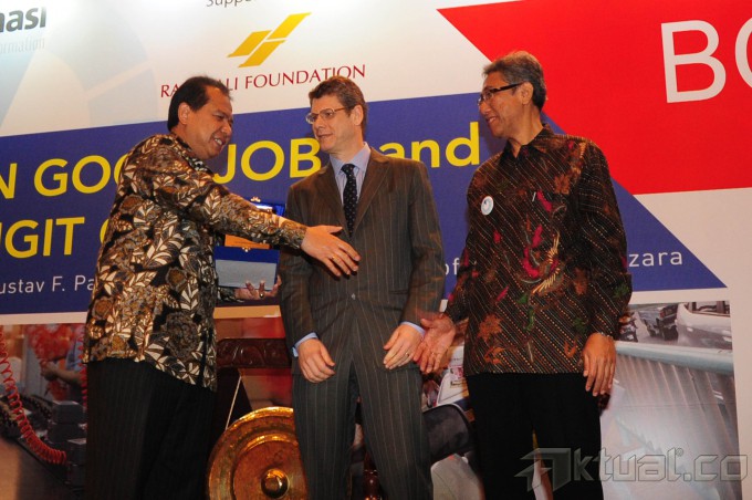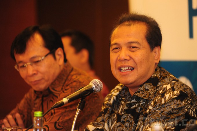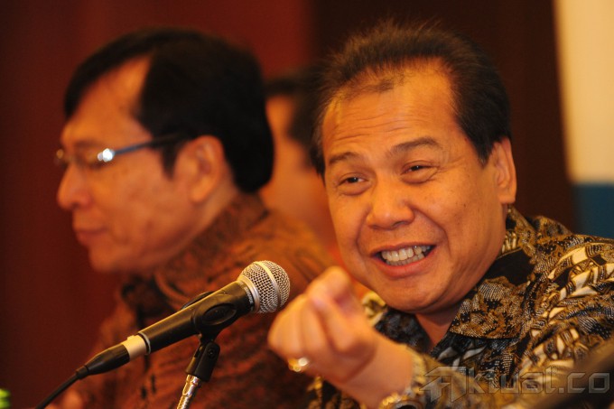 Menteri Koordinator Perekonomian Chairul Tandjung (kanan) didampingi penulis buku Raden Pardede memberikan penjelesan saat konferensi pers seusai peluncuran buku Double Digit Growth di Jakarta, Kamis (9/10/2014). Pusat Transformasi Kebijakan Publik meluncurkan buku yang berjudul “ pilihan ekonomi yang dihadapi presiden baru “ menjadi hal yang prioritas pemerintahan baru dengan menggenjot pertumbuhan ekonomi. AKTUAL/TINO OKTAVIANO
