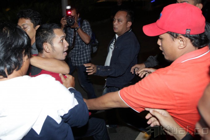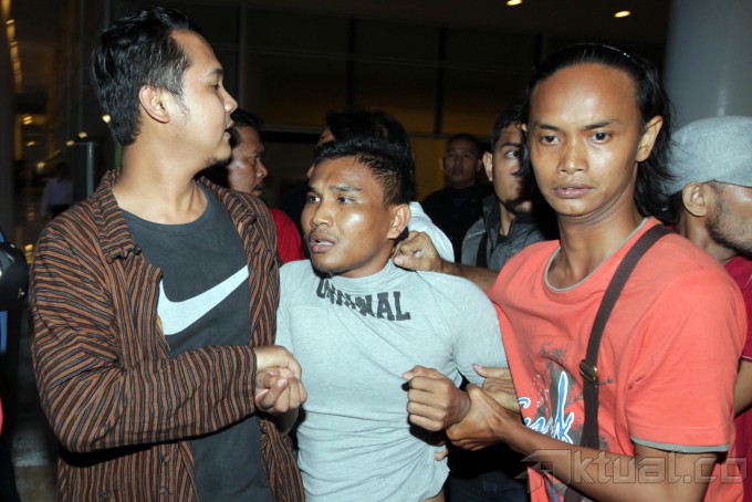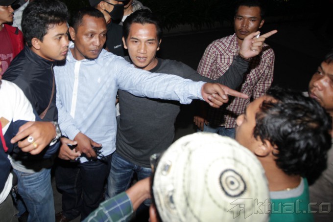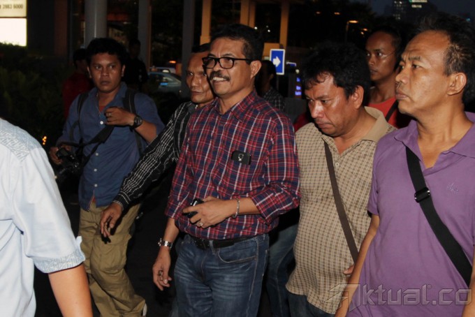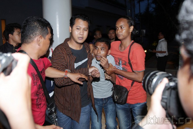 Polisi mengamankan Cawagub Maluku Daud Sangadji yang berpasangan dengan Cagub Herman Adrian Koedoeboen (no urut 4) pada Pemilukada Provinsi Maluku yang diduga memicu kericuhan pada sidang sengketa Pilgub Maluku di gedung Wisma Nusantara, Jakarta, Kamis (14/11/2013). Ketujuh orang ini diamankan terkait kericuhan antarpedukung pada sidang sengketa Pilgub Maluku di Mahkamah Konstitusi. Aktual/Tino Oktaviano