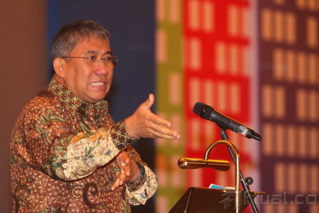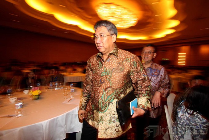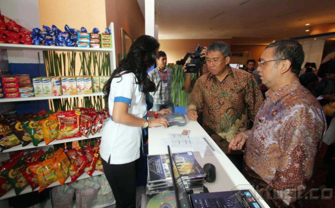 Wamen Perdagangan Bayu Krisnamurthi (tengah) didampingi Dirut Artajasa Arya Damar (kanan) meninjau salah satu stan usai Seminar Nasional Integrasi Sistem Pembayaran di Jakarta, Rabu (29/1). Seminar yang diadakan oleh PT Artajasa tersebut bertujuan untuk mempersiapkan pelaku usaha dan masyarakat Indonesia terkait Integrasi sistem pembayaran menjelang Masyarakat Ekonomi ASEAN (MEA) tahun 2015. Aktual/Tino Oktaviano
