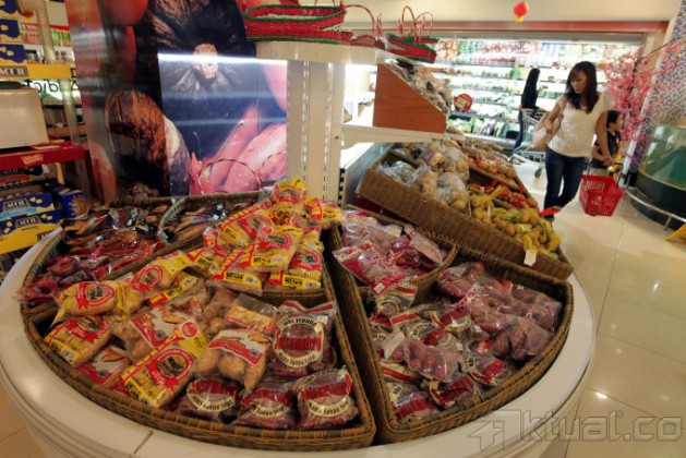 Pengunjung berbelanja bahan makanan di salah satu Supermarket di kawasan Jakarta Selatan, Senin (3/2/204). Badan Pusat Statistik (BPS) mencatat inflasi pada Januari 2014 sebesar 1,07 % dan laju inflasi tahunan maupun tahun kalendernya 8,22%. kenaikan bahan pangan. “Januari cuaca buruk, sehingga mempengaruhi distribusi bahan bahan makanan. Aktual/Tino Oktaviano