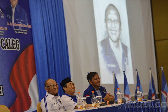 Peserta Konvensi Calon Presiden Partai Demokrat, Pramono Edhie Wibowo menyampaikan arahan soal pemenangan Pemilu Legislatif dalam acara Pendidikan Politik, Pelatihan Caleg dan Temu Kader Partai Demokrat Se-Kalimantan Tengah di Pangkalan Bun, Kalimantan Tengah, Selasa (25/2/2014). Selain menghadiri acara tersebut, Pramono Edhie Wibowo berkesempatan untuk mensosialisasikan dirinya dalam rangka Konvensi Calon Presiden Partai Demokrat dengan menawarkan beberapa program seperti kedaulatan dan kemandirian pangan, peningkatan mutu pendidikan, pemerataan layanan kesehatan dan aktif memelopori dan memelihara perdamaian dunia sesuai amanat konsitusi. Aktual/Rumgadi