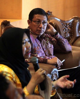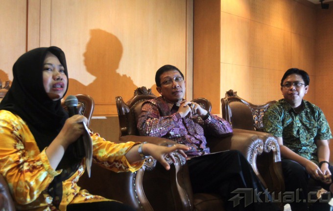 Dari kiri ke kanan, Pengamat Pemilu Perludem Titi Anggraini, Wakil Ketua MPR RI. Lukman Hakim Saifuddin dan Pengajar Ilmu Politik UIN Syarif Hidayatullah Burhanudin Muchtadi menjadi pembicara pada diskusi dengan tema “Refleksi dan Evaluasi Sistem Pemilu Legislatif 2014” di Gedung Parlemen, Jakarta, Senin (5/5/2014). Burhanudin melalui surveinya mengungkapkan sebanyak 27 persen pemilih mengaku menerima uang dari sejumlah caleg. Aktual/Tino Oktaviano
