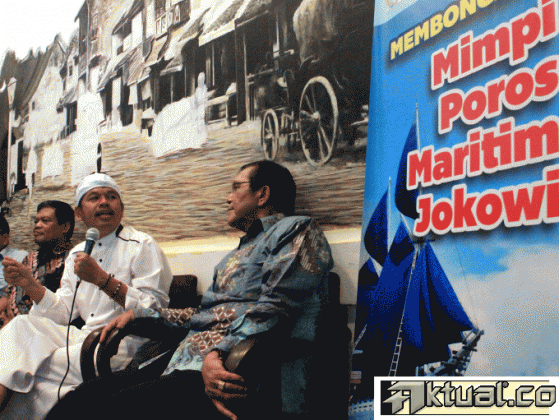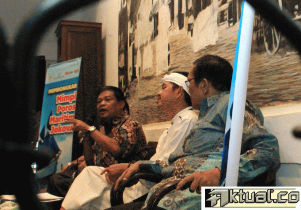 Dari kiri kanan, Moderator Arief Gunawan, Mantan Kalahar Bakorkamla Laksdya (Purn) Dididk H Purnomo, Bupati Purwakarta Dedy Mulyadi, Anggota DPD RI Djasarmen Purba saat diskusi Forum Senator Untuk Rakyat, di Bakoel Cofe, Jakarta Pusat, Minggu (10/5/2015). Diskusi ini bertemakan “Membongkar Mimpi Poros Maritim Jokowi” AKTUAL/MUNZIR
