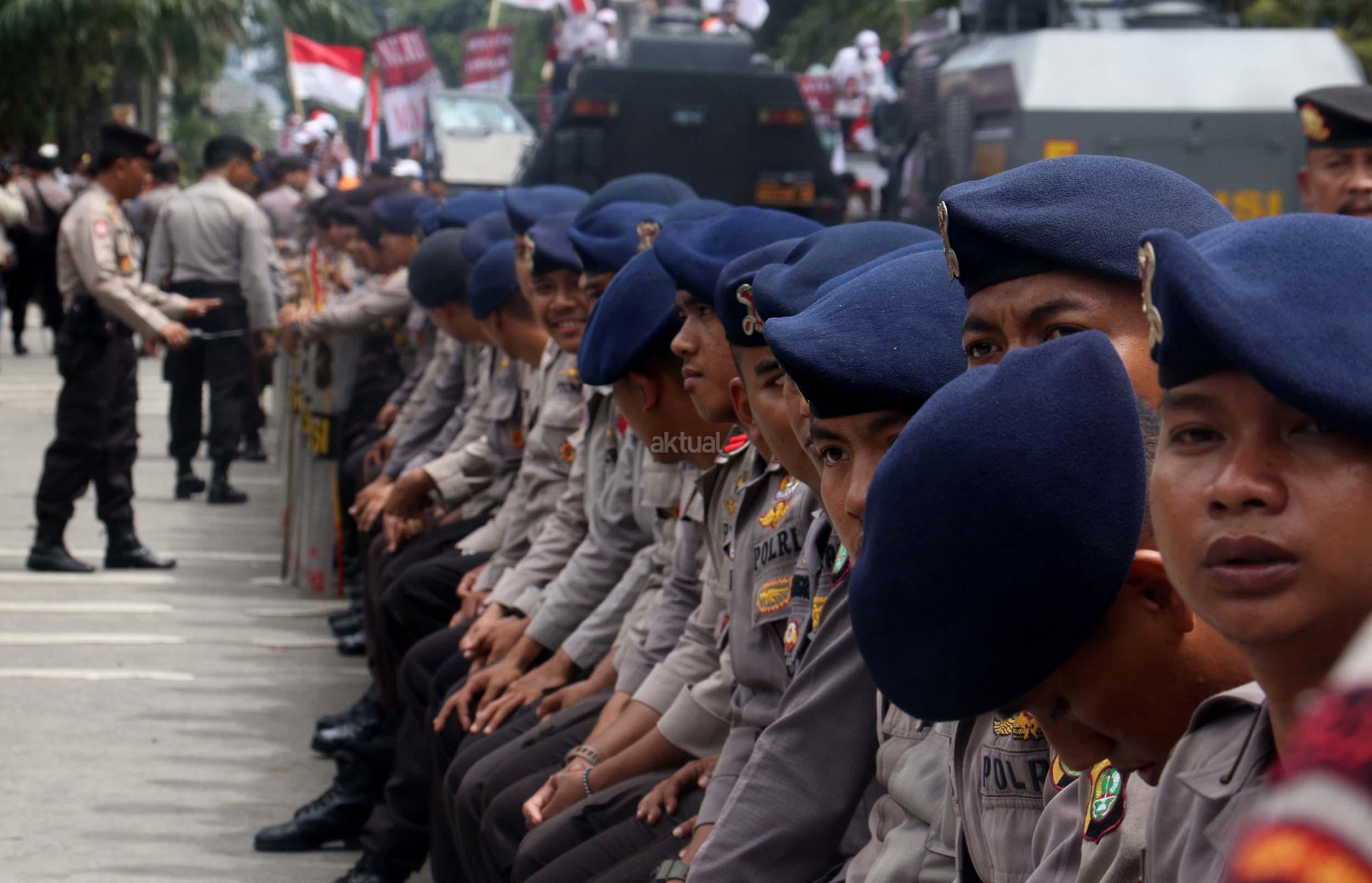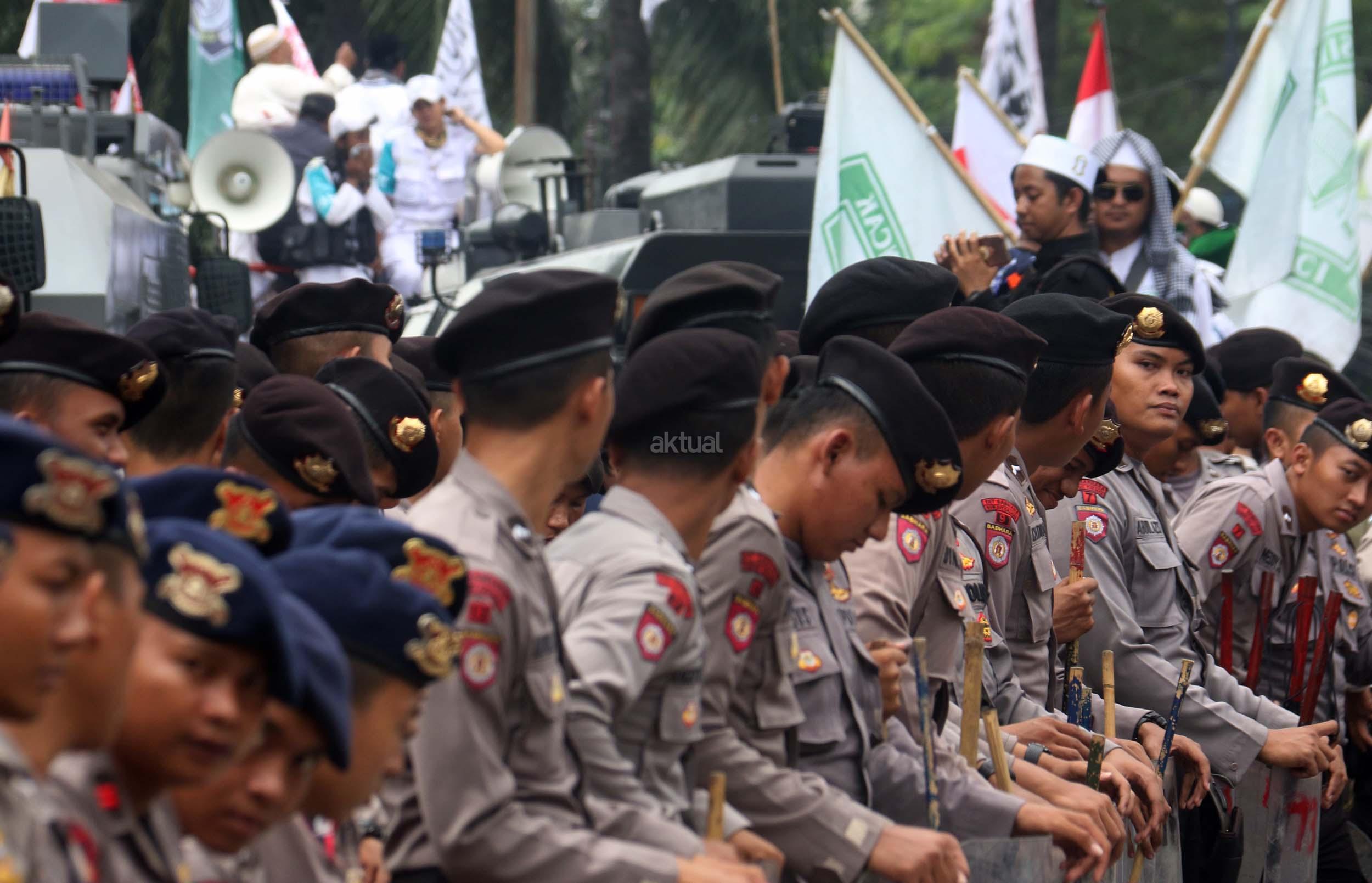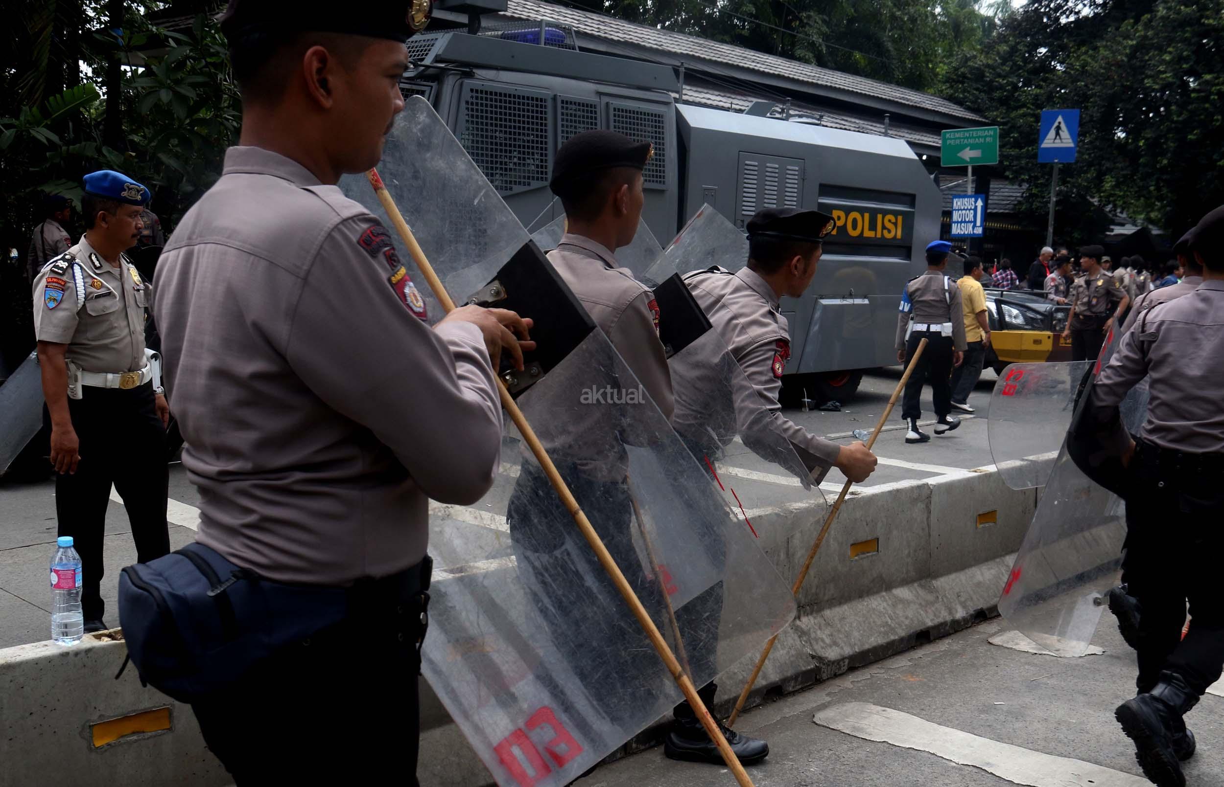 Aparat kepolisian menjaga lokasi sidang lanjutan Basuki Tjahaja Purnama (Ahok) di Gedung Kementerian Pertanian, Jakarta, Selasa (3/1/2017). Sedikitnya 2.500 personel kepolisian mengamankan jalannya sidang keempat tersebut. AKTUAL/Munzir