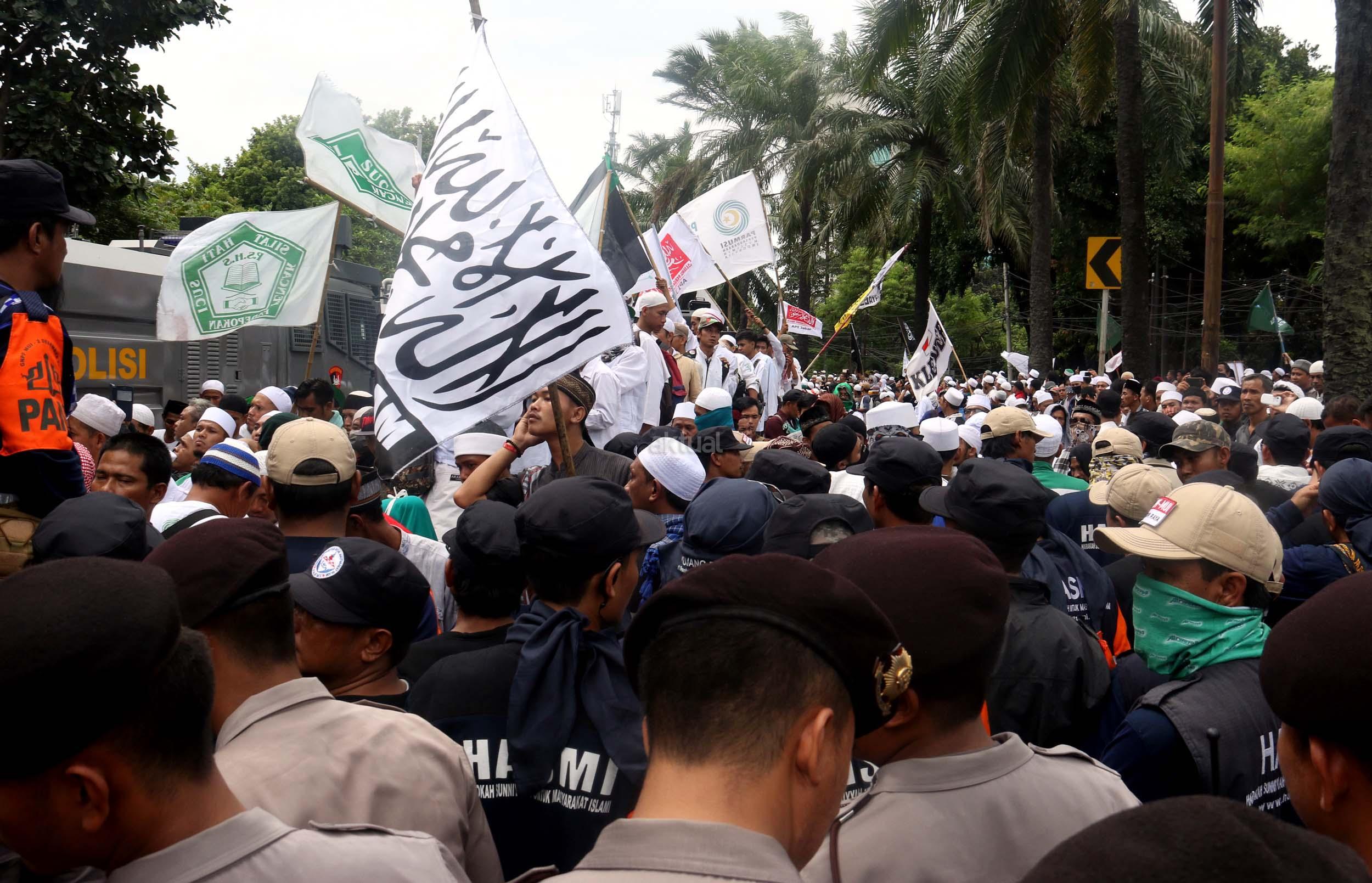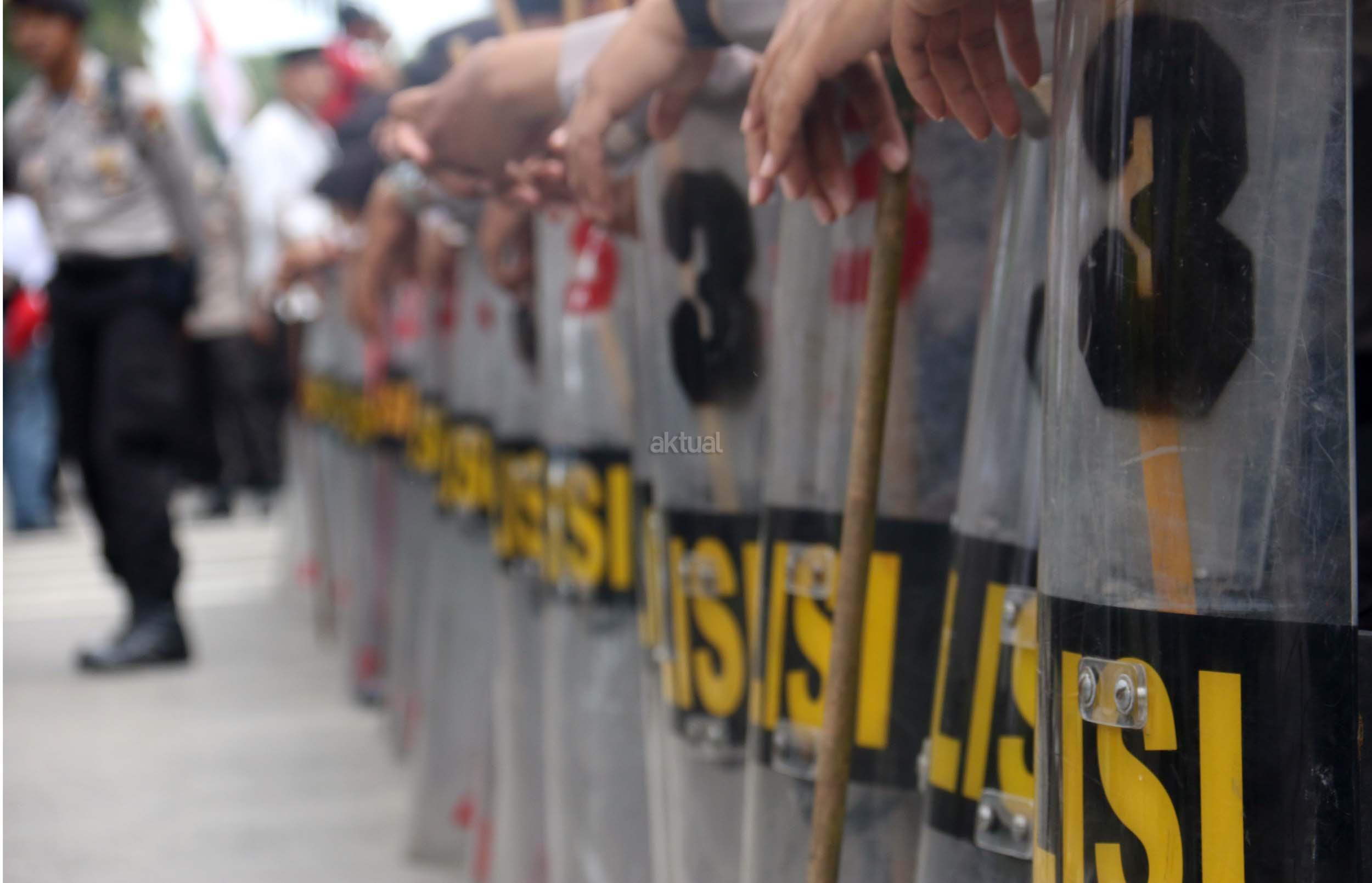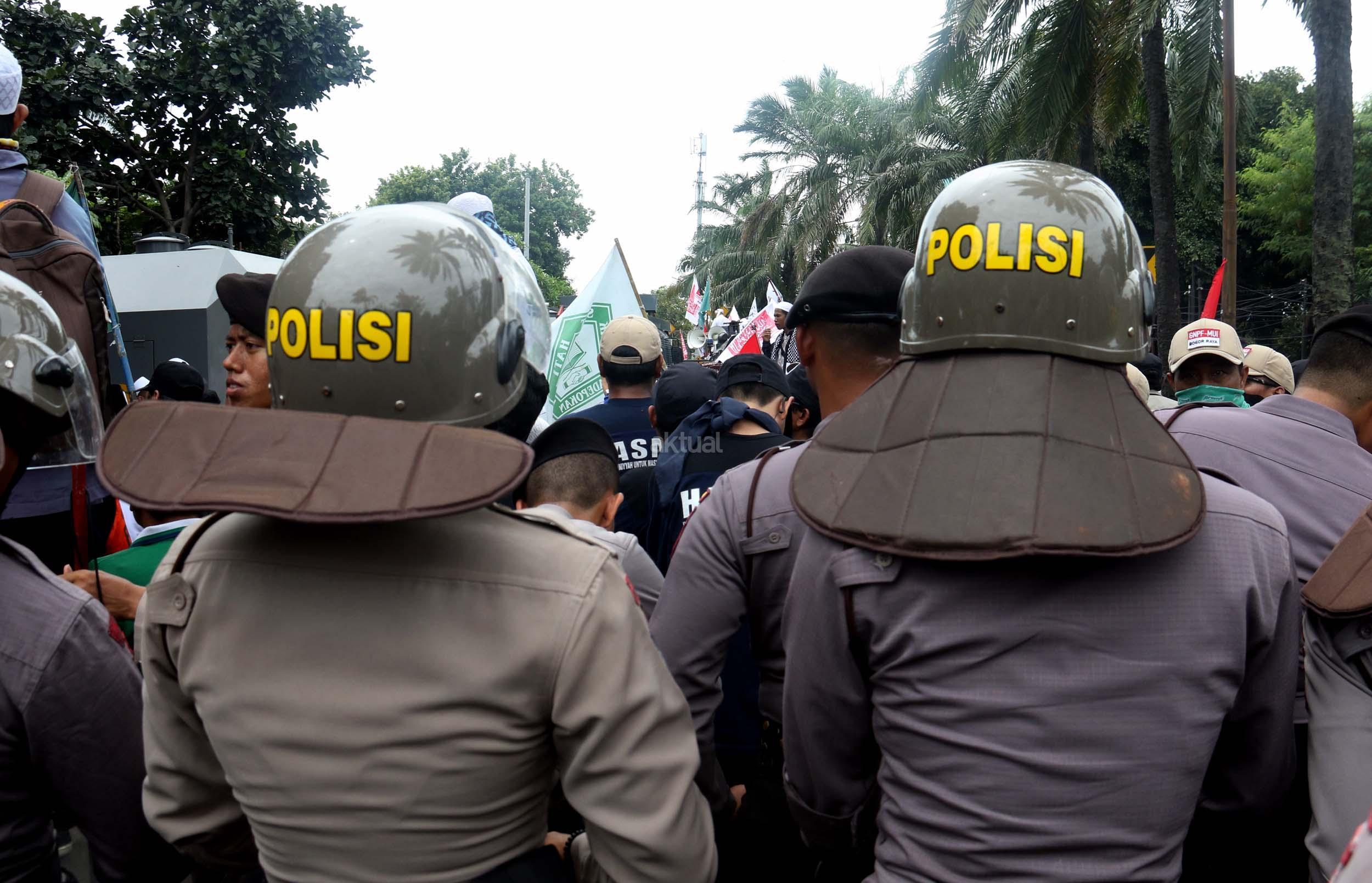 Aparat kepolisian menjaga lokasi sidang lanjutan Basuki Tjahaja Purnama (Ahok) di Gedung Kementerian Pertanian, Jakarta, Selasa (3/1/2017). Sedikitnya 2.500 personel kepolisian mengamankan jalannya sidang keempat tersebut. AKTUAL/Munzir