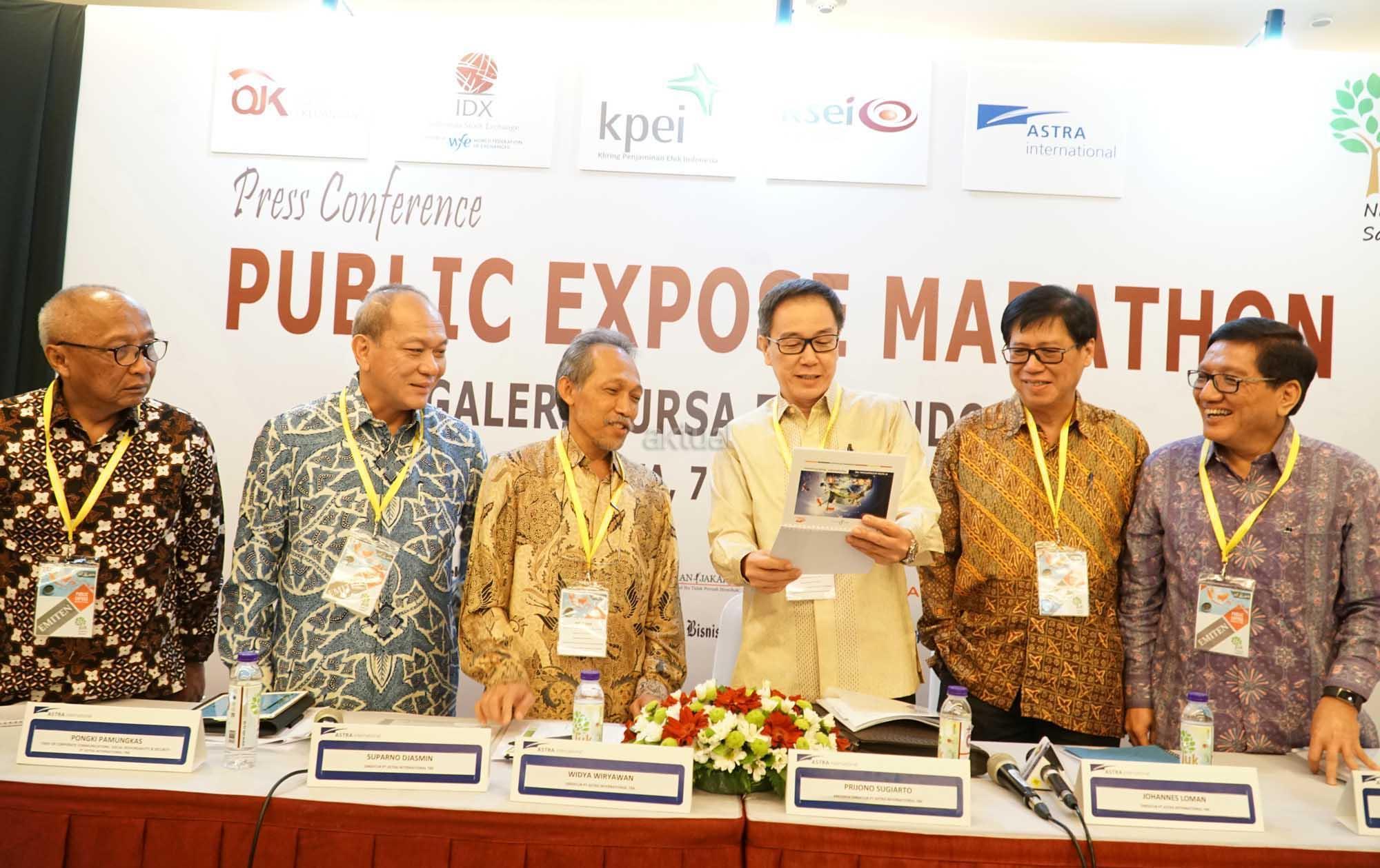 Jajaran Direksi dan manajemen astra saat paparan publik marathon di di Gedung Bursa Efek Indonesia Jakarta, Rabu (9/8).