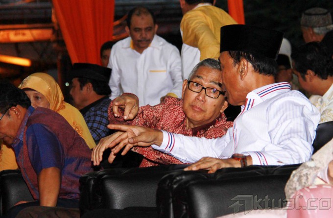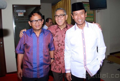 Ketua Umum Partai Hanura Wiranto didampingi mantan Wapres Tri Sutrisno dan Rektor UIN Syarif Hidayatullah Jakarta Komaruddin Hidayat saat acara peringatan Nuzulul Qur’an di Kantor DPP Partai Hanura, Jakarta, Sabtu (19/7/2014). Dalam pidatonya, Wiranto mengatakan, kita harus mengamalkan nilai-nilai Al Quran menjelang finalisasi Pilpres.(toga)