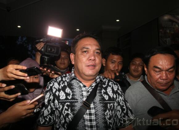 Anggota Komisi E DPRD DKI Jakarta Fraksi Hanura Fahmi Zulfikar, menjawab pertanyaan wartawan seusai menjalani pemeriksaan di Bareskirim Mabes Polri, Jakarta, Rabu (29/4). Fahmi Zulfikar diperiksa selama 9 Jam oleh penyidik Bareskrim sebagai saksi dalam kasus dugaan tindak pidana korupsi pengadaan Uninterruptible Power Supply (UPS) dalam APBD perubahan Tahun 2014 .ANTARA FOTO/Reno Esnir
