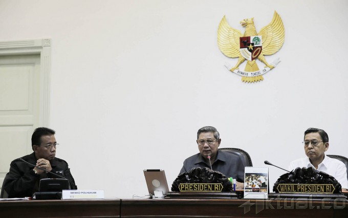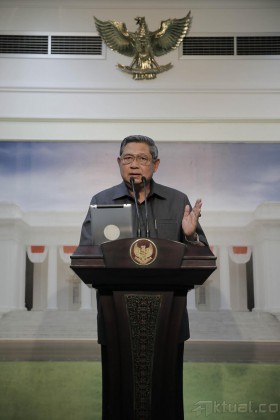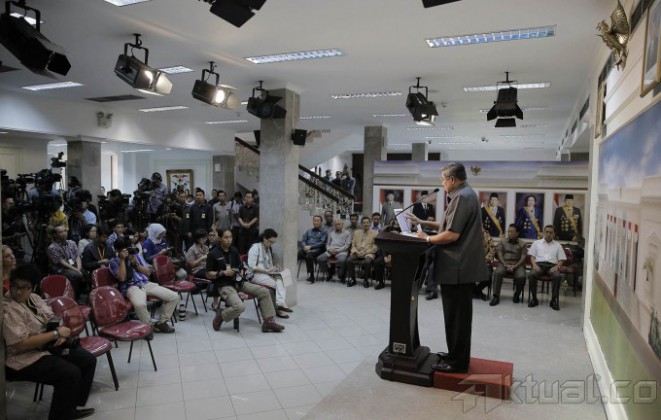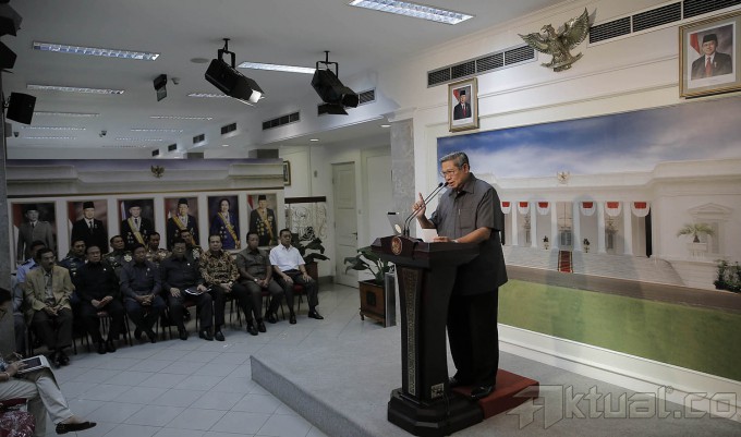 Presiden SBY memberi keterangan pers yang disampaikan usai rapat terbatas tentang pengamanan Pemilu Presiden 2014 di Istana Kepresidenan, Jakarta, Kamis (3/7/2014). Aktual/Rumgapres/Abror