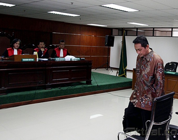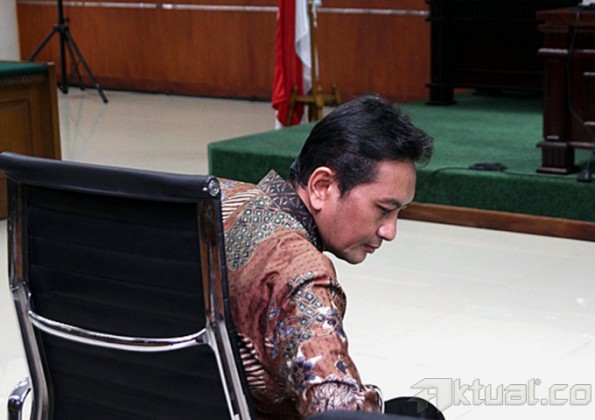 Mantan Kepala Dinas Dishub Pemprov DKI Jakarta Udar Pristono saat menjalani sidang perdana di Pengadilan Tindak Pidana Korupsi (Tipikor), Jalan HR Rasuna Said, Jakarta Selatan, Senin (6/4/2015). Sidang yang seharusnya digelar batal, karena karena Tim Pengacara Udar mengikuti sidang Praperadilan. AKTUAL/MUNZIR