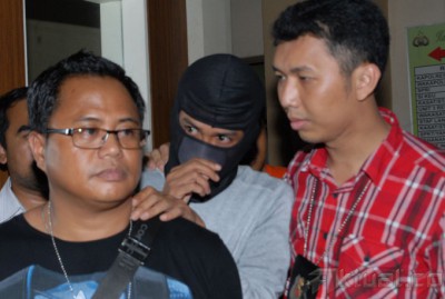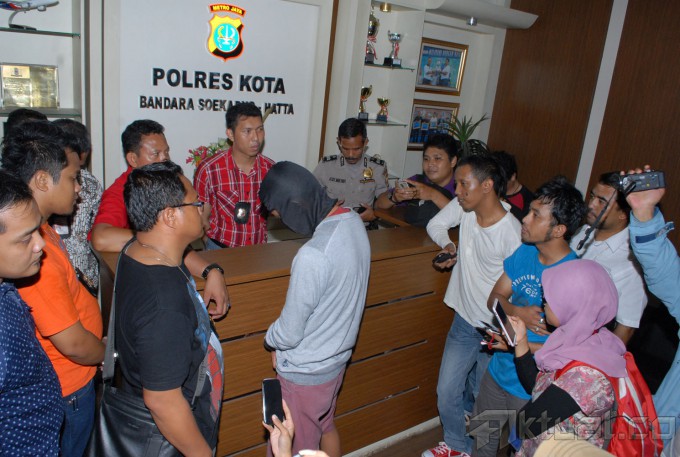 Tersangka pelaku pembunuhan terhadap Sri Wahyuningsih, Jean Arter Heliselan (JAH)saat digelandang petugas di Mapolres Bandara Soekarno-Hatta, Banten, Sabtu (22/11/2014). JAH terduga pelaku pembunuhan Sri Wahyuni yang ditemukan membusuk di dalam mobil yang terparkir di Bandara Soekarno-Hatta, beberapa waktu lalu. AKTUAL/Istimewa