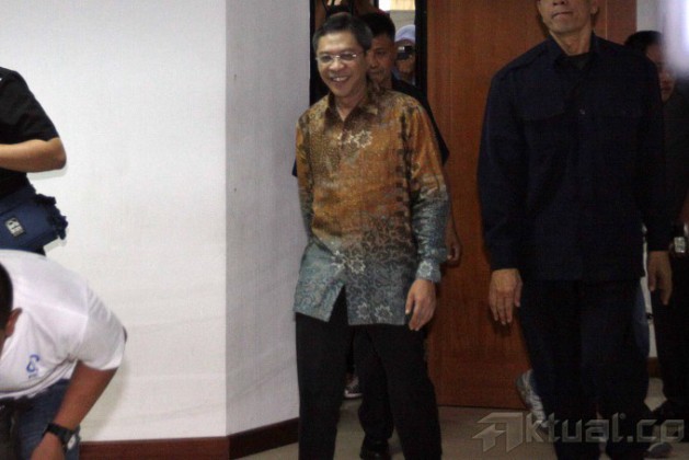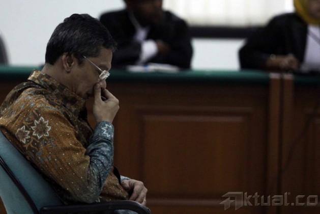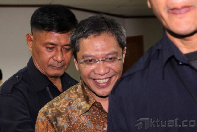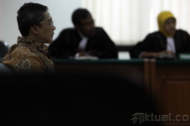 Terdakwa kasus penerimaan suap dan pencucian uang terkait penetapan kuota impor sapi Ahmad Fathanah menjalani vonis di Pengadilan Tindak Pidana Korupsi (Tipikor), Jakarta, Senin (4/11/2013). Majelis Hakim Pengadilan Tindak Pidana Korupsi memvonis Ahmad Fathanah dengan hukuman 14 tahun penjara denda Rp 1 miliar subsidair 6 bulan kurungan. Fathanah terbukti menerima suap Rp 1,3 miliar untuk pengurusan penambahan kuota impor daging sapi dan pidana pencucian uang. Aktual/Stringer