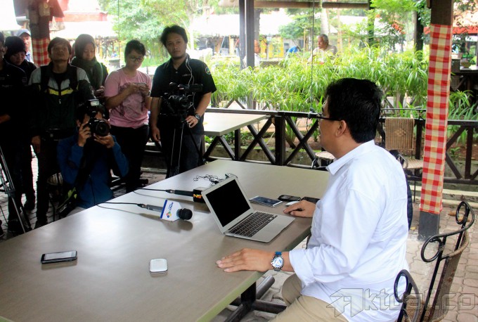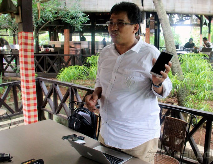 Politikus NasDem Zainal Taher memberi keterangan kepada media terkait foto syur mirip Abraham Samad dan Feriyani Lim di Rumah Makan Pulau Dua, Jakarta, Rabu (4/1/2015). Dalam keterangannya, caleg gagal dari Makassar ini mengaku bahwa dirinya yang mengambil foto syur Abraham Samad dan Feriyani Lim di sebuah kamar hotel pada 2007 lalu. AKTUAL/MUNZIR