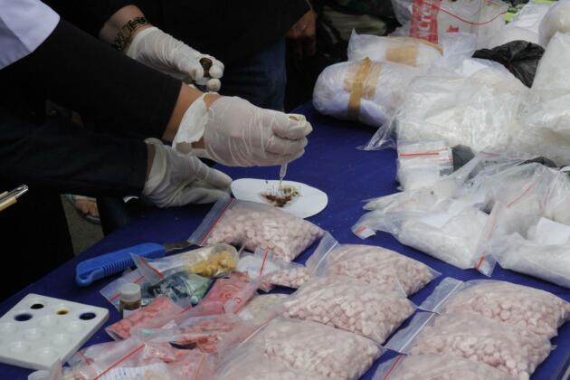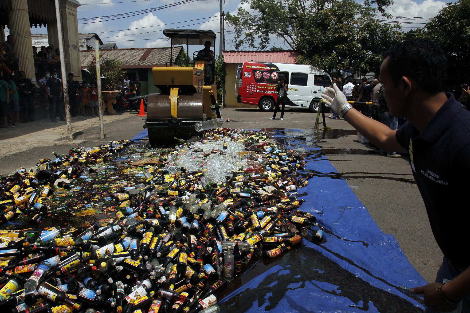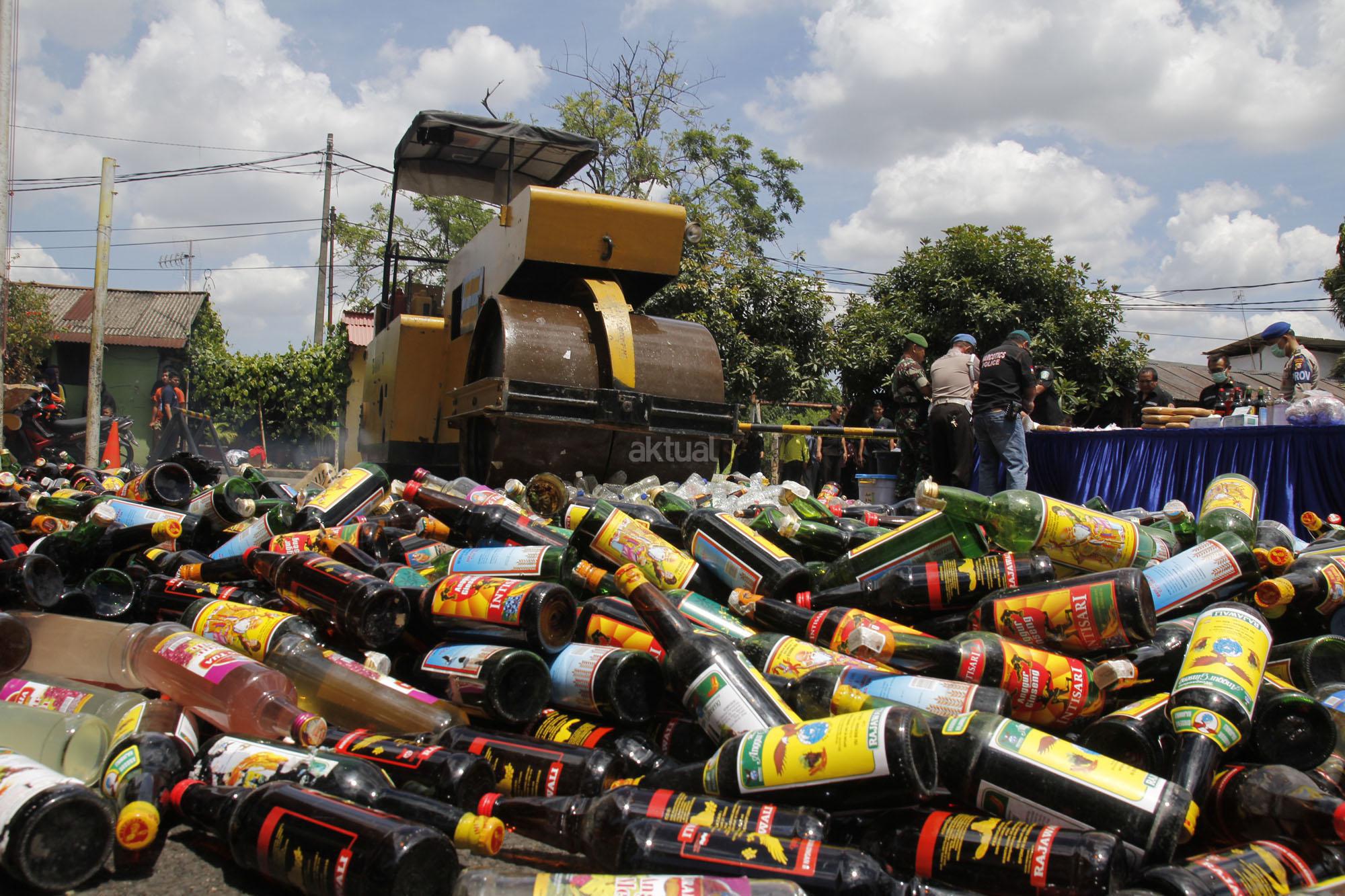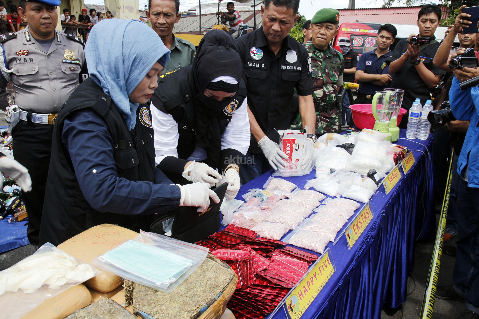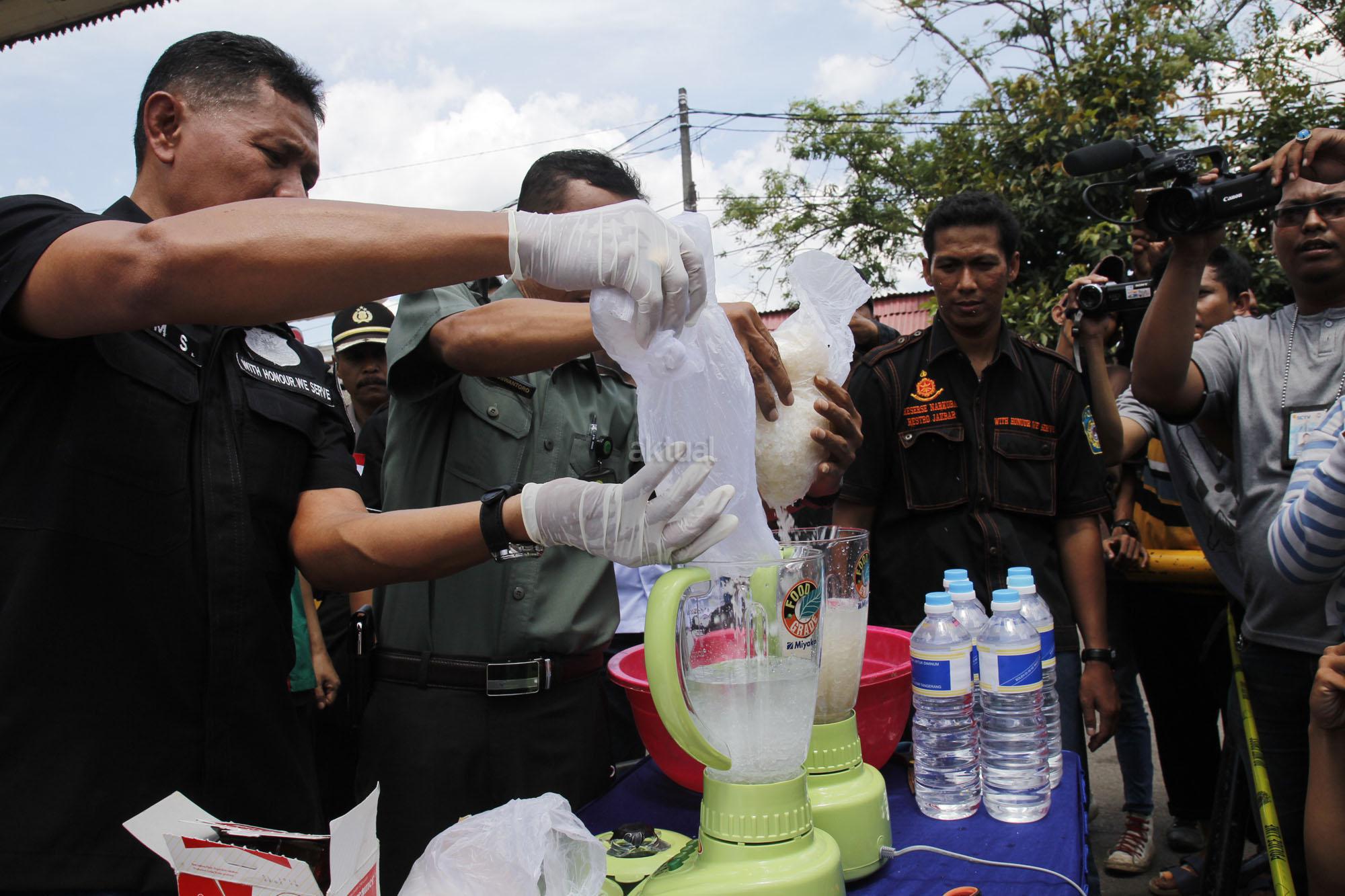 Petugas dari Sat Res Narkoba Jakarta Barat memusnahkan barang bukti ganja dengan cara dibakar di Polsek Palmerah, Jakarta Barat, Rabu (23/12/2015). Dalam rangka cipta kondisi menjelang Natal 2015 dan Tahun Baru 2016 Sat Resnarkoba Polres Metro Jakarta Barat dan Polsek Palmerah memusnahkan barang bukti sebanyak 38,8 kilogram ganja, 19,9 kilogram shabu, 7.477 butir pil ekstasi, 519 psikotropika H-5 dan 5.400 botol miras. AKTUAL/JUNAIDI MAHBUB