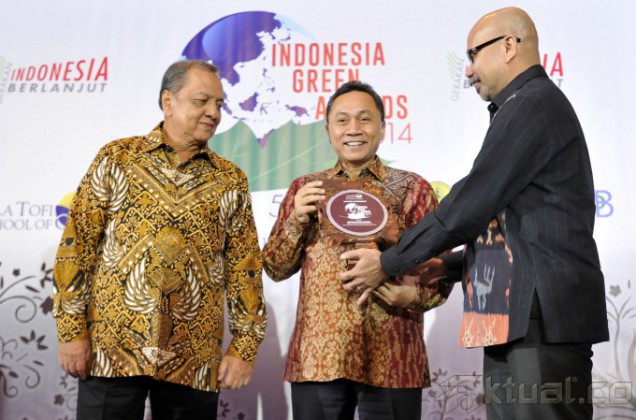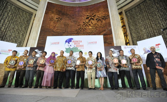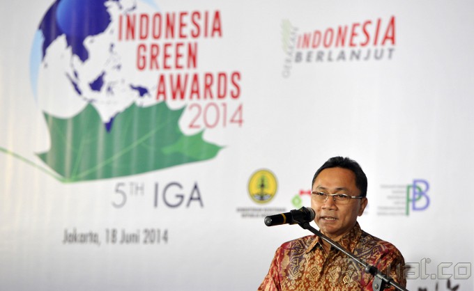 Duta Gerakan Indonesia Berlanjut Happy Salma membacakan prosa mengenai lingkungan hidup pada peluncuran Gerakan Indonesia Berlanjut dan Penganugerahan Indonesia Green Awards ke-5 di Jakarta, Rabu (18/6/2014). Gerakan Indonesia Berlanjut merupakan inisiatif untuk mengkampanyekan penerapan pembangunan berkelanjutan agar menyokong kehidupan yang berkualitas. Aktual/Tino Oktaviano