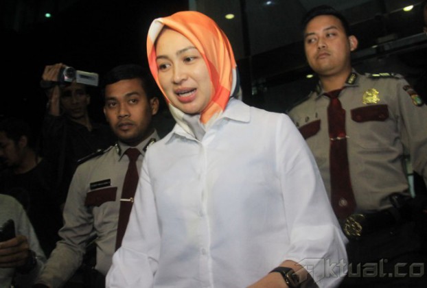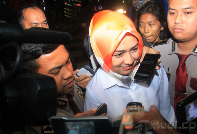 Walikota Tanggerang Selatan Airin Rachmi Diany saat keluar usai di periksa penyidik Komisi Pemberantasan Korupsi (KPK) di Jakarta, Kamis (22/1/2015). Airin diperiksa terkait korupsi Alat Kesehatan (Alkes) Puskesmas Tanggerang Selatan dengan tersangka Dadang Prijatna. AKTUAL/MUNZIR