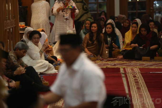 Presiden ke-5 Indonesia Megawati Soekarnoputri (kiri) menggelar peringatan dua tahun (haul) wafat suaminya, Taufik Kiemas, di Jalan Teuku Umar Nomor 27, Menteng, Jakarta Pusat, Senin (8/6/2015). Taufik Kiemas wafat pada 8 Juni 2013 saat masih menjabat ketua MPR RI. Ia meninggal akibat menderita penyakit jantung dan ginjal. Pria asal Sumatera Selatan ini pernah menjalani operasi pemasangan alat pacu jantung di RS Jantung Harapan Kita pada 2005. AKTUAL/TINO OKTAVIANO