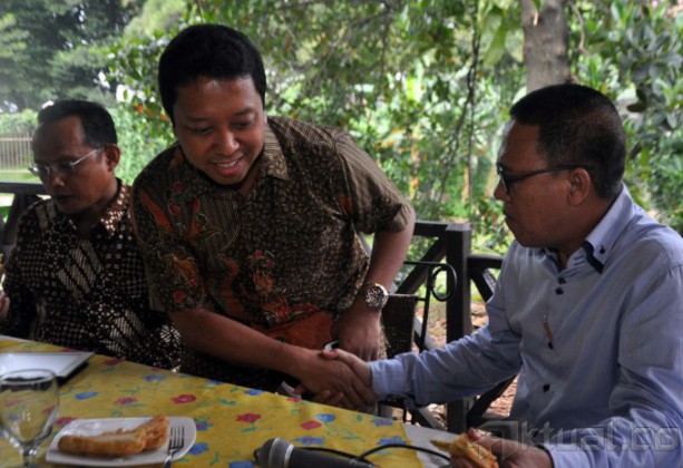 Ketua Umum PPP versi Muktamar Surabaya, Romahurmuziy memberikan keterangan pers usai pengadilan PTUN menerima gugatan Surya Dharma Ali (SDA) di Resto Nusa Dua, Senayan, Jakarta, Rabu (25/2/2015). Romahurmuziy memastikan akan mengajukan banding dan akan patuh terhadap hukum, setelah itu baru akan mundur jika hukum memastikan untuk mundur dari PPP. AKTUAL/JUNAIDI MAHBUB