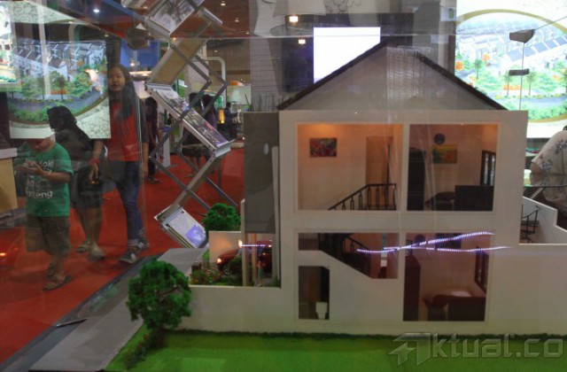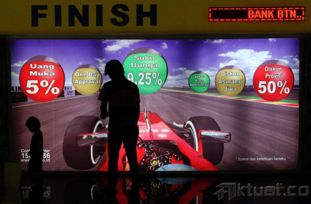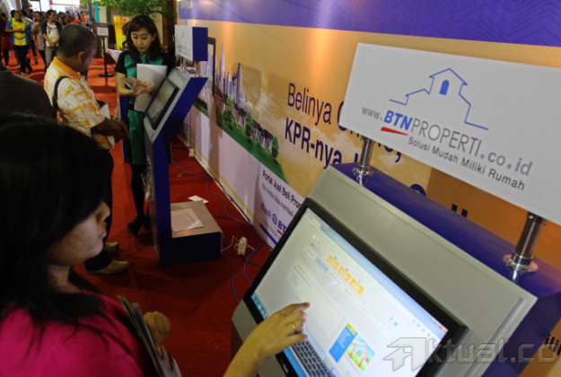 Pengunjung memperhatikan tawaran kredit rumah di Indonesia Property Expo 2015, Jakarta Convention Center, Senayan, Jakarta, Minggu (15/2/2015). BTN menargetkan realisasi kredit baru sebesar Rp1 triliun, dimana kebijakan khusus yang dapat dimanfaatkan antara lain approval permohonan kredit langsung di tempat, suku bunga kredit 9,25%, uang muka hanya 5%, diskon biaya asuransi, diskon biaya provisi 50%, bebas biaya administrasi. AKTUAL/TINO OKTAVIANO