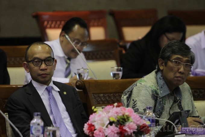 Menteri Keuangan Chatib Basri berjalan saat akan mengikuti rapat kerja dengan Komisi XI DPR terkait pengambilaihan PT Nippon Asahan Alumunium atau Indonesia Asahan Alumunium (Inalum) di Komplek Parlemen senayan, Jakarta, Rabu (30/10/2013). Rapat lanjutan tersebut membahas persetujuan anggaran pengambilalihan Inalum yang kepemilikan 100 persen saham dan pengolahan Inalum jatuh ke tangan pemerintah Indonesia efektif 1 November 2013. Aktual/Tino Oktaviano